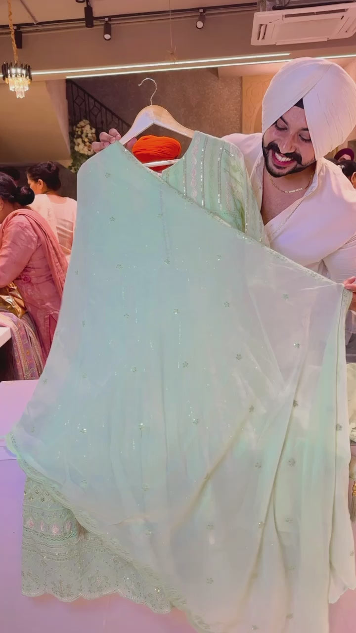 Pastel Green Georgette Fully embroidered Anarkali Suit with Beautiful Duppata