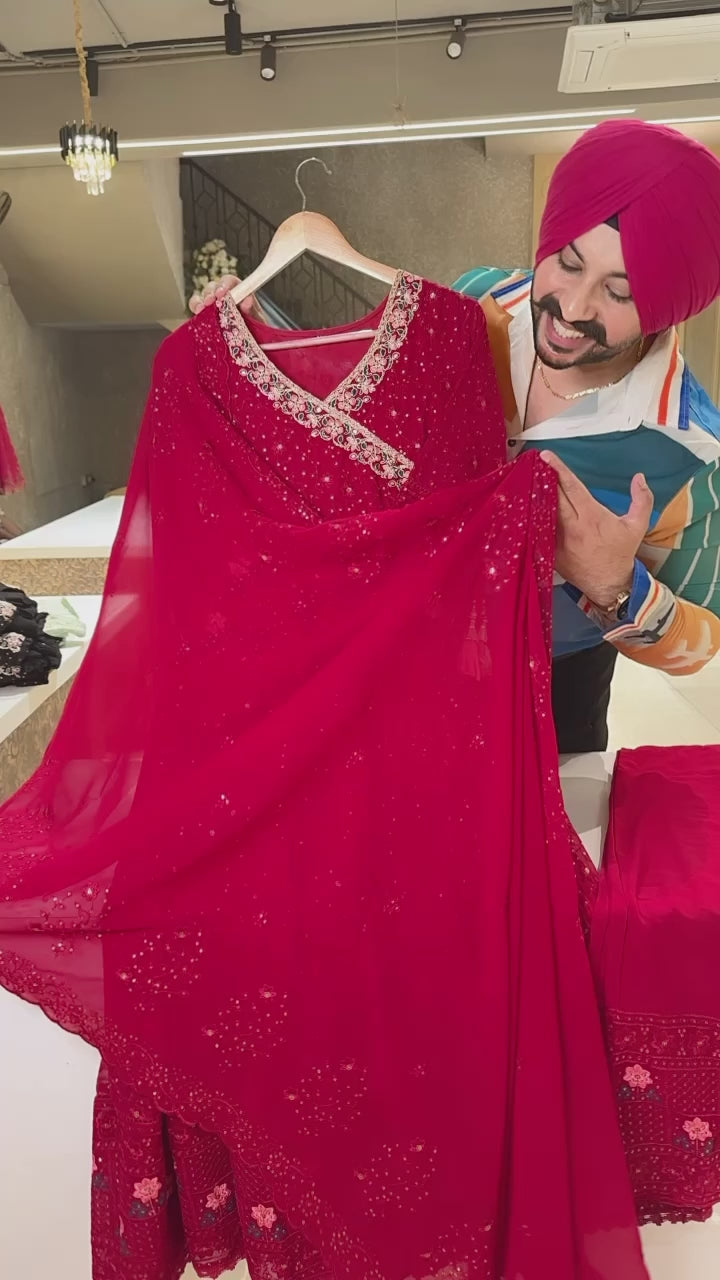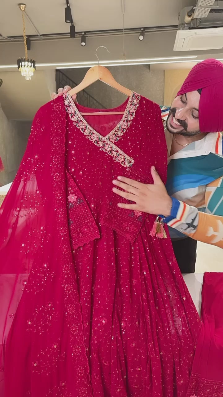 Anaari Georgette Fully Embroidered Angrakha Anarkali Suit with Embroidered Duppata