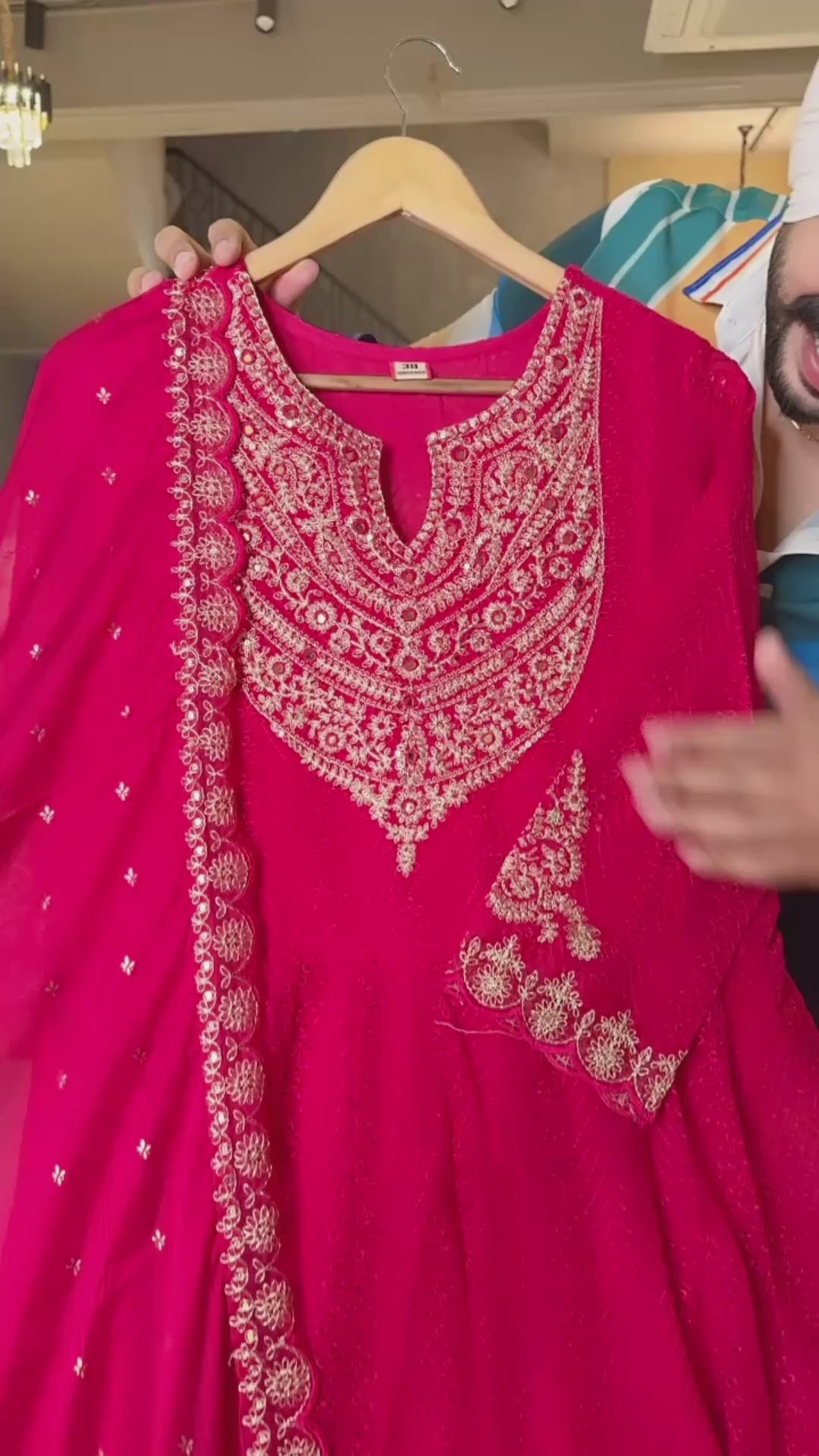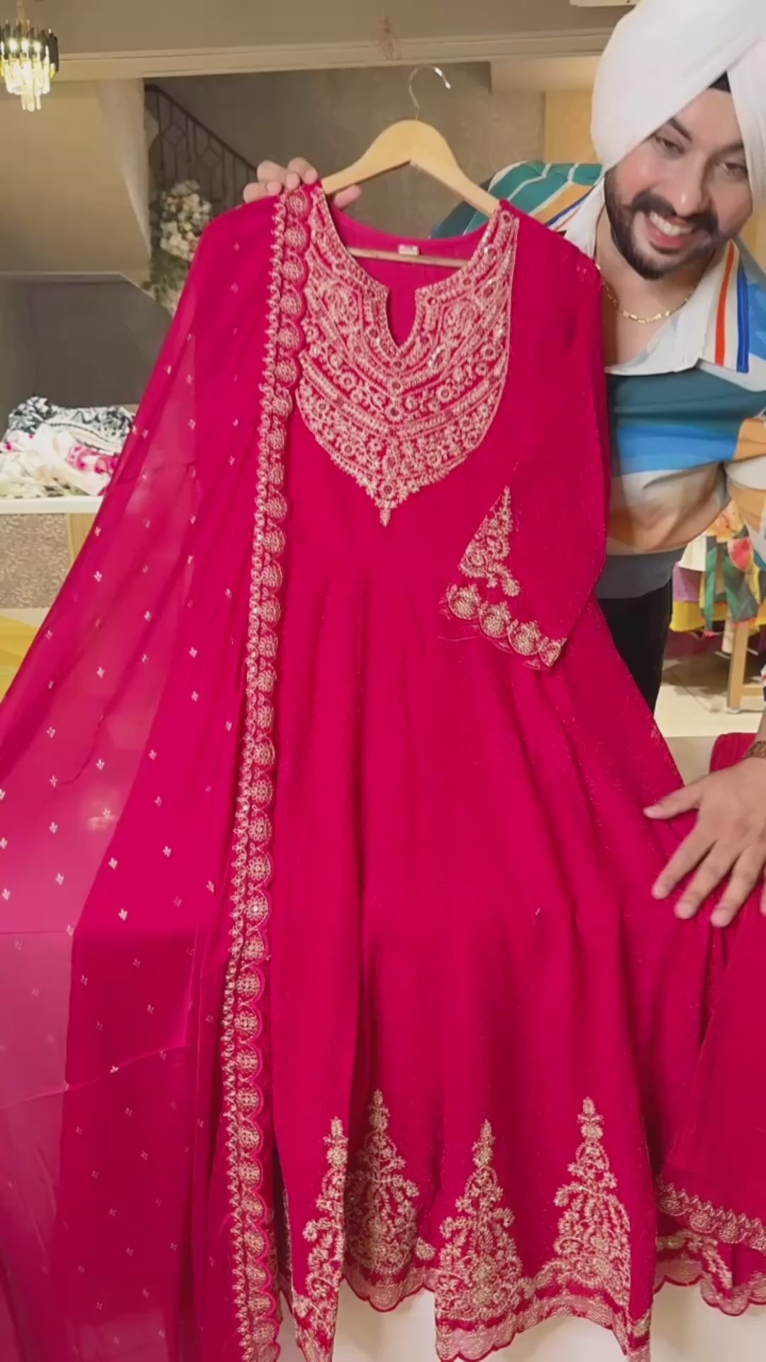 Anaari Pink Georgette Heavy Embroidered & Shifli work Full Flair Anarkali Suit with Beautiful Duppata
