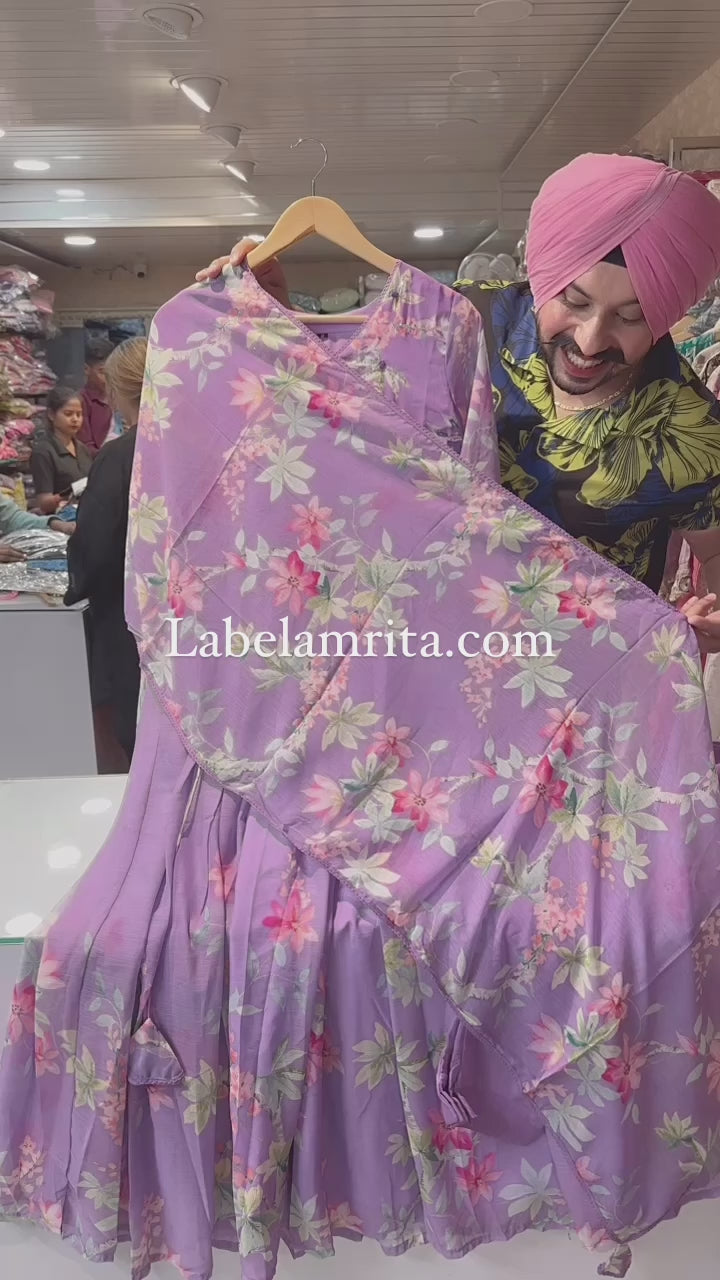 Purple chiffon Embroidered Anarkali suit with Beautiful Light Stole