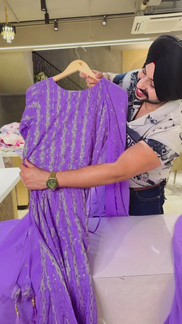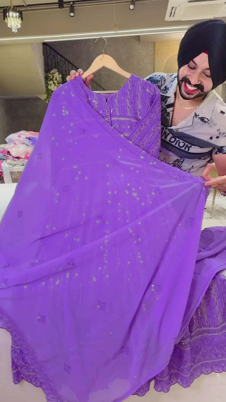 Purple Georgette Fully Embroidered Anarkali Suit with Beautiful Embroidered Duppata
