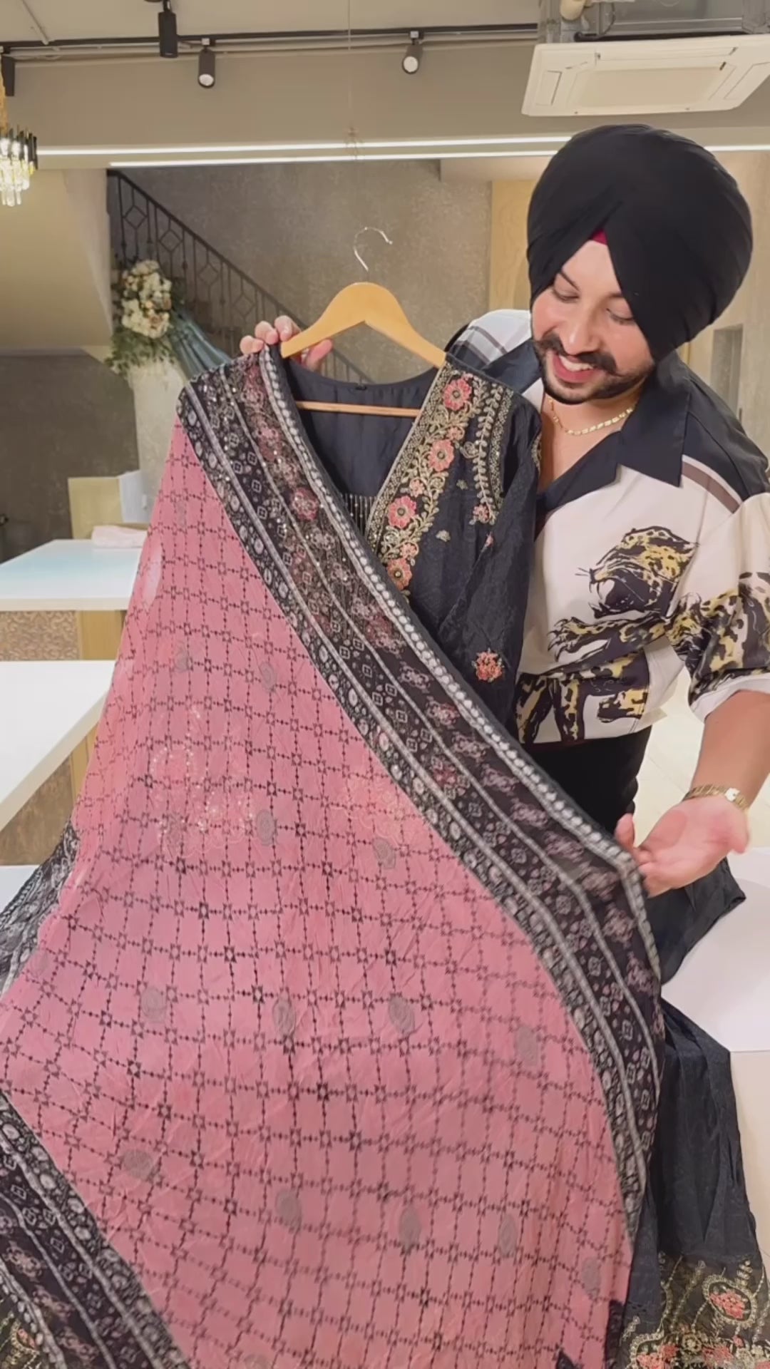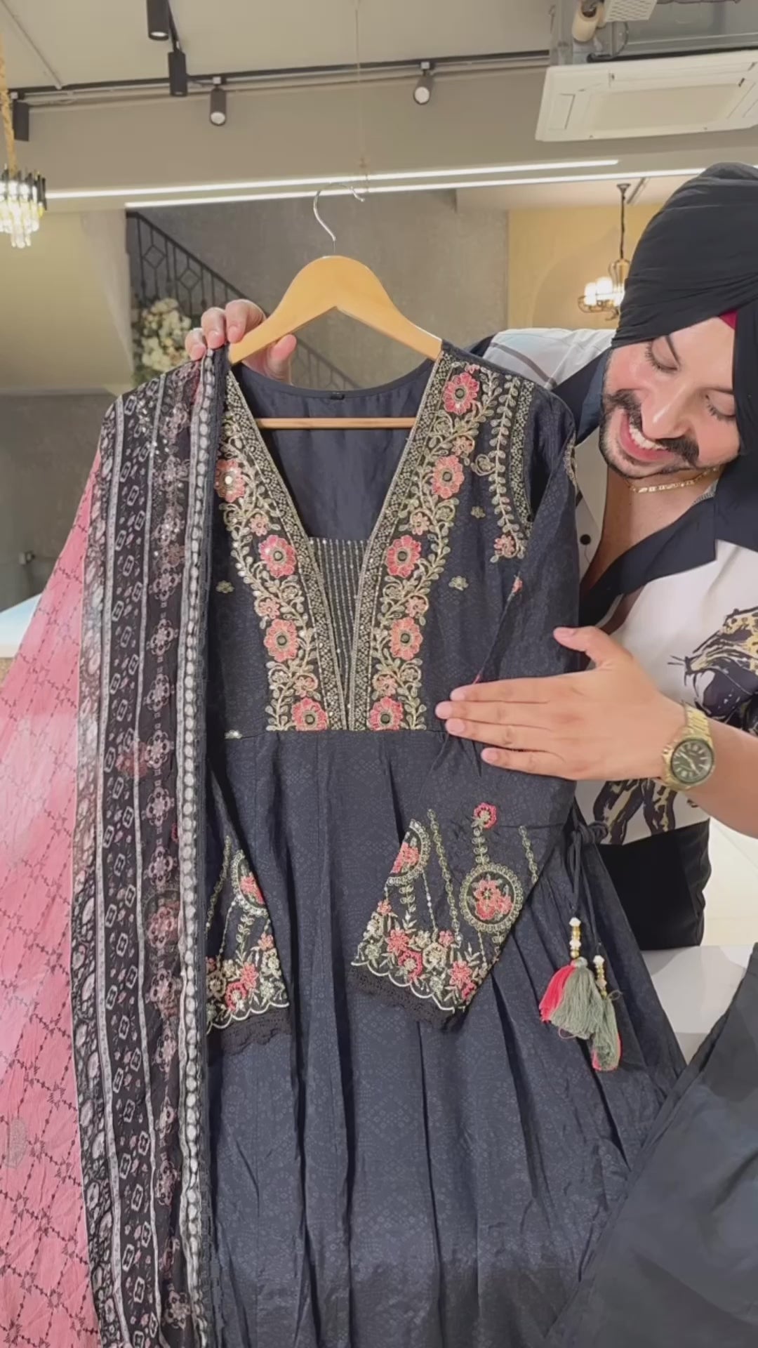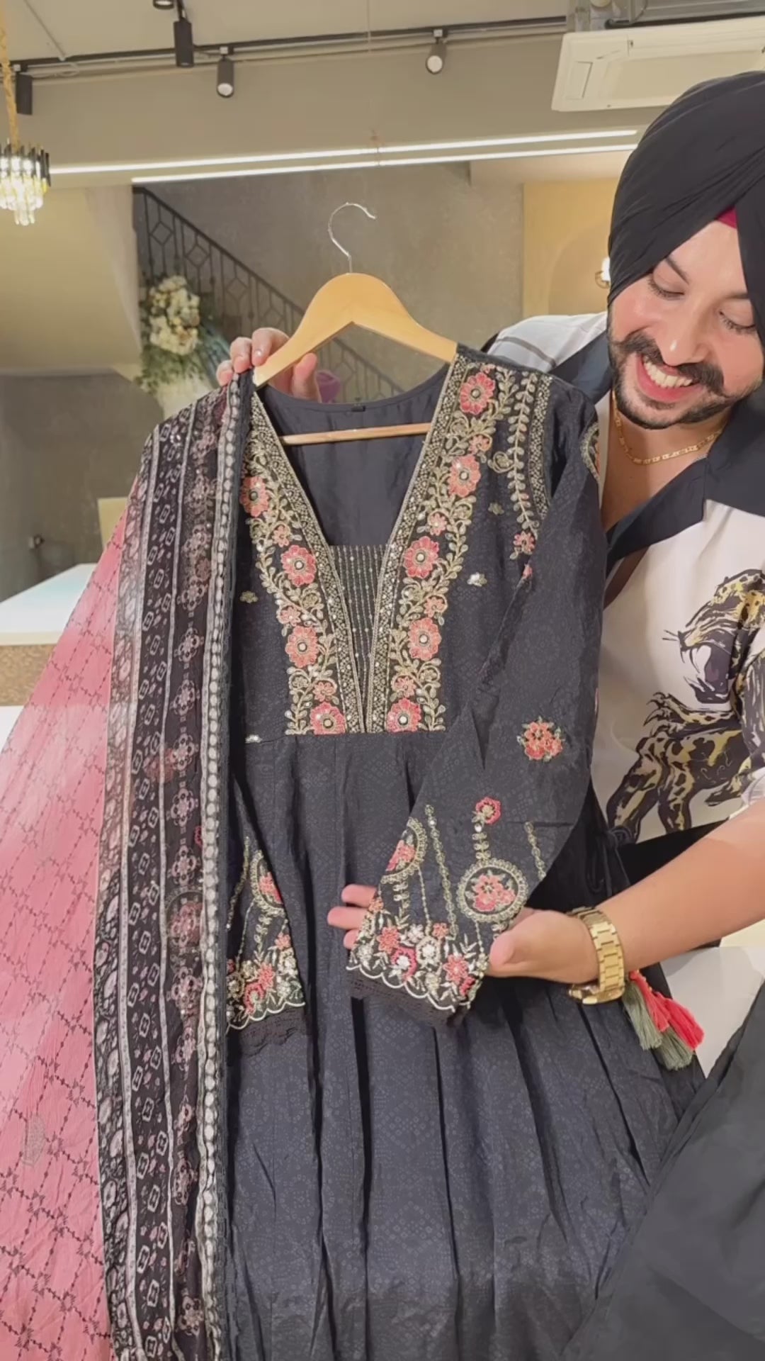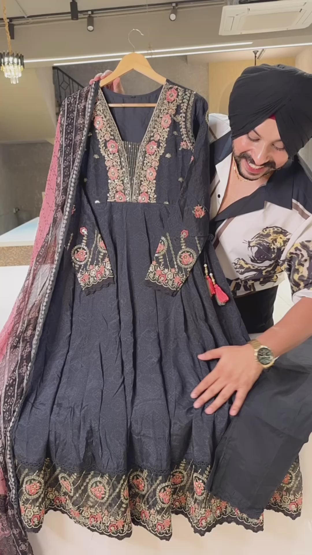 Black Crepe Heavy Embroidered Anarkali Suit with Beautiful Chiffon Duppata