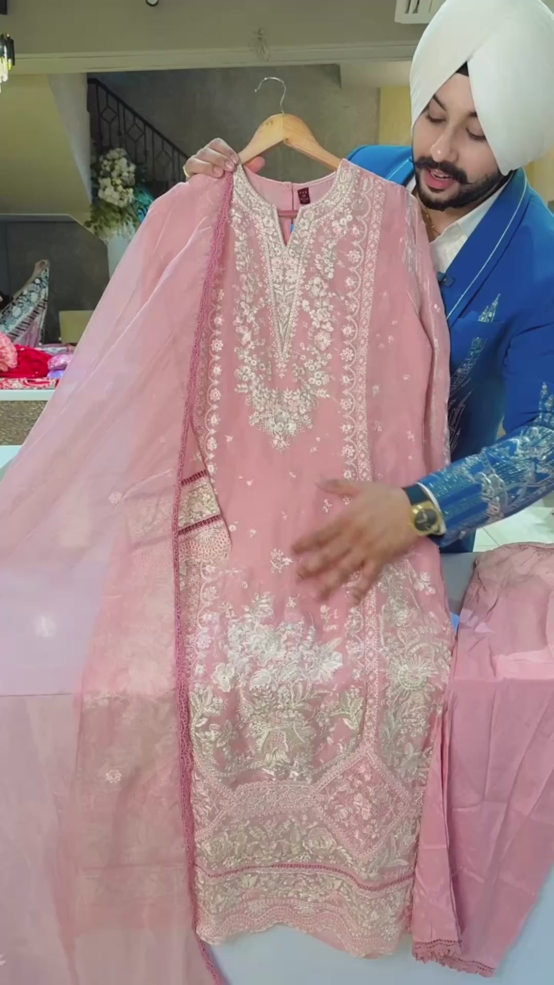 Baby Pink Crush Organza Heavy Embroidered Pakistani Suit with Beautiful Organza Duppata