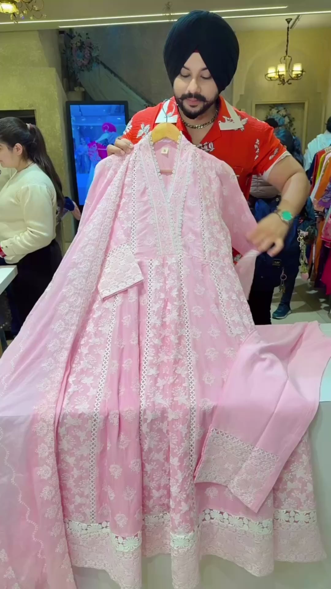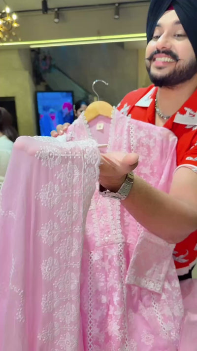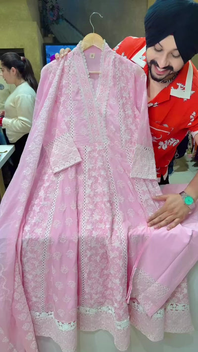 Baby Pink Mal Cotton Fully Embroidered Anarkali Suut with Embroidered Mal Cotton Duppata