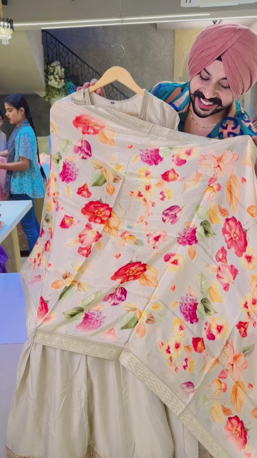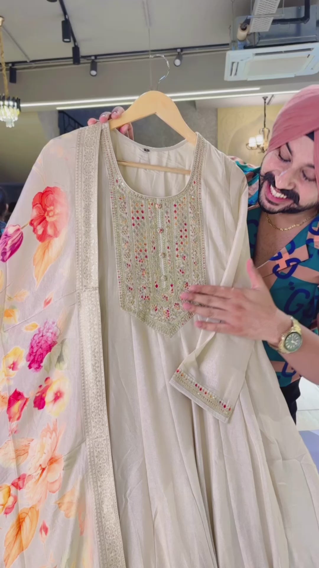 Beige Chinon Embroidered Anarkali Gown with beautiful Silk digital print Duppata