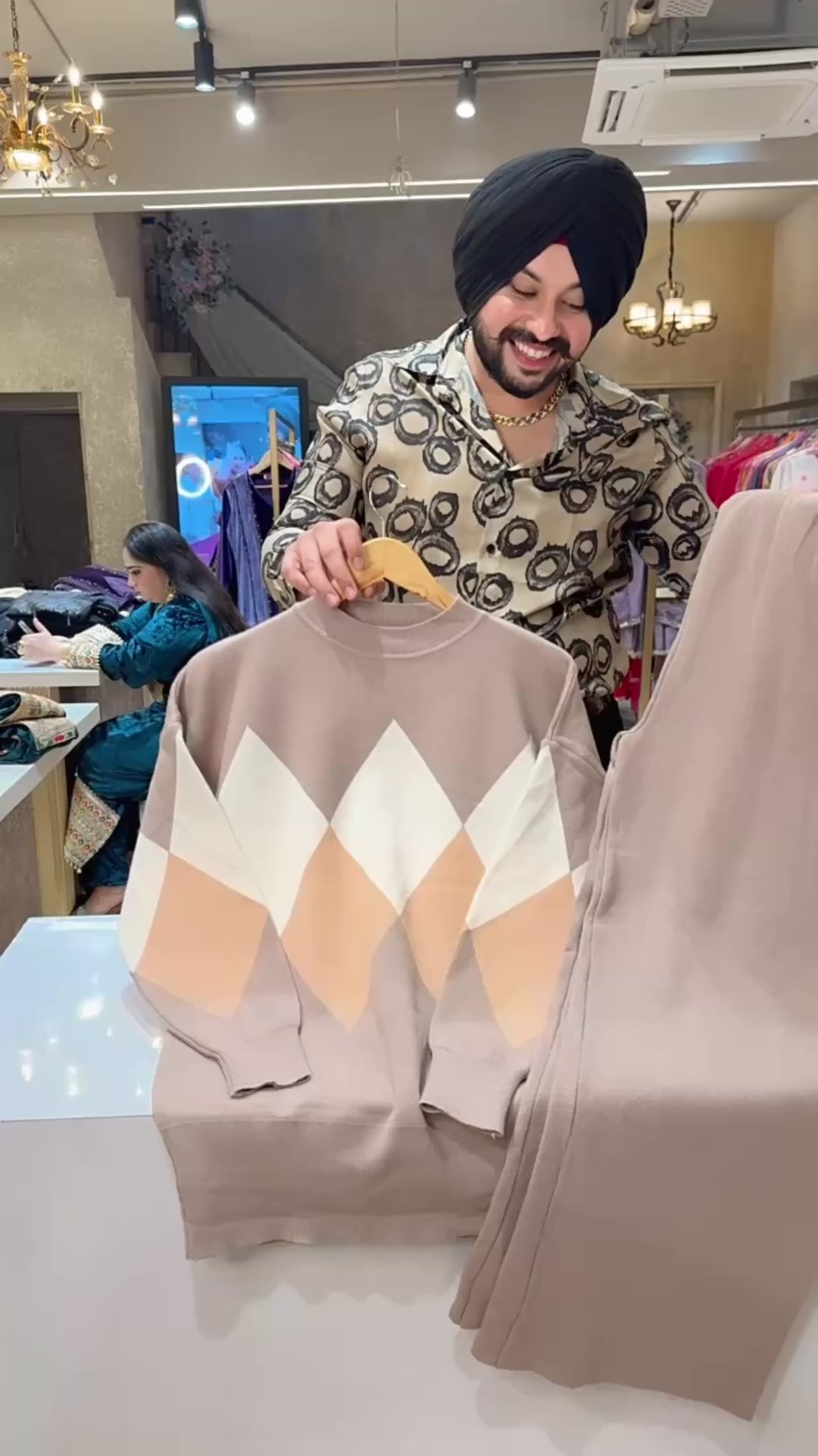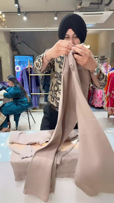 Beige Imported Woolen Fully Stretchable baggy Western Coord set