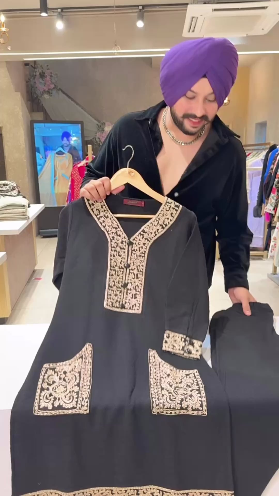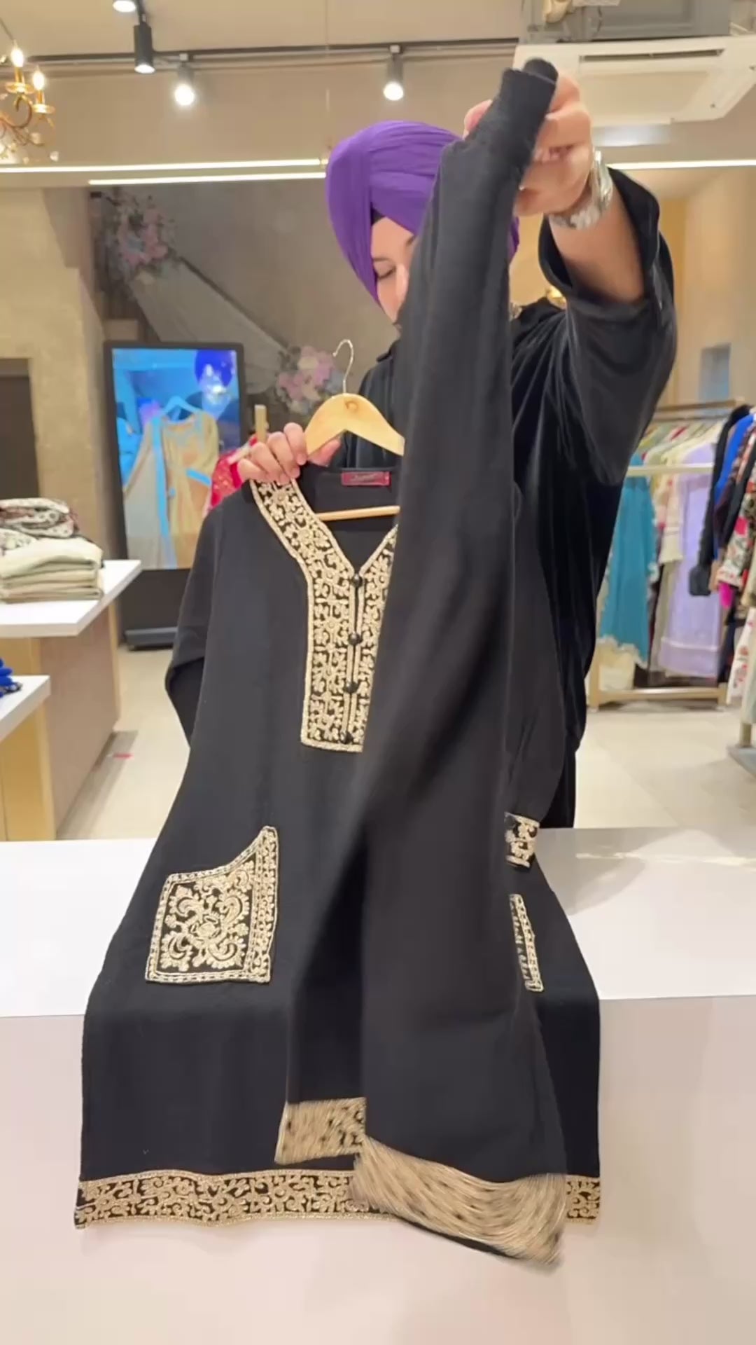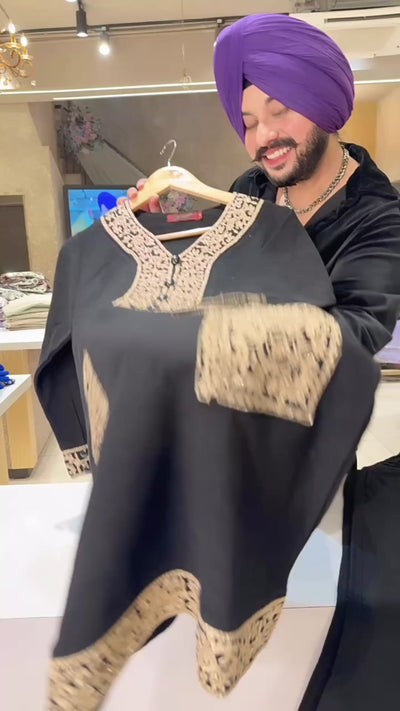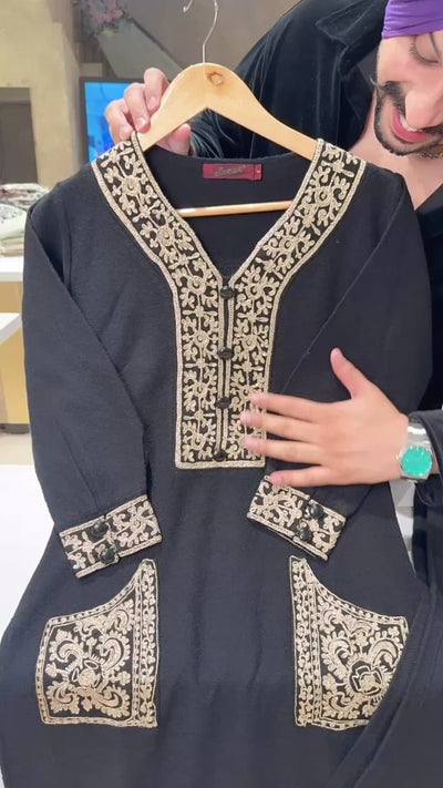 Black Woolen Long Length Embroidered Coord sets IN0