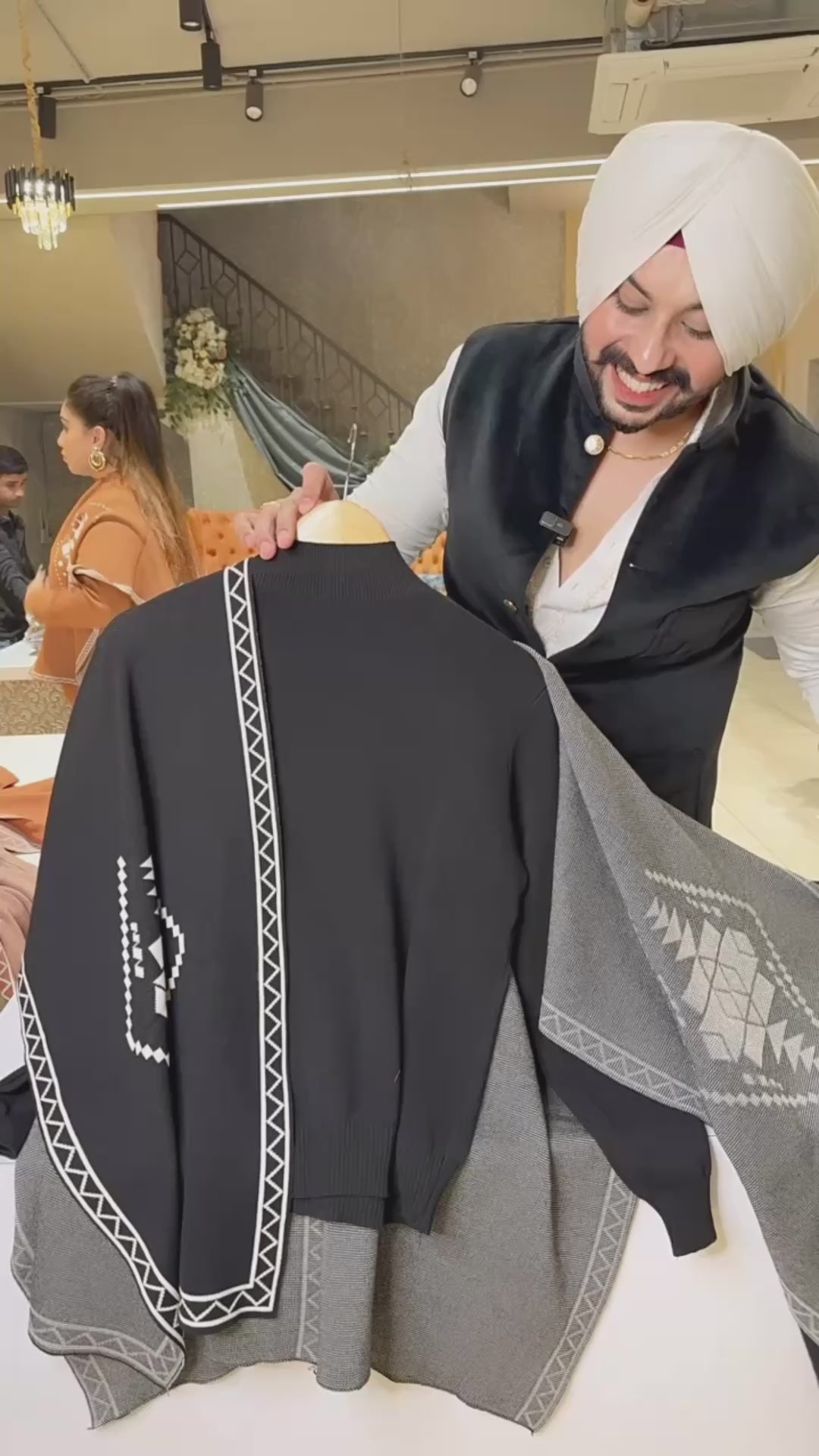 Black Imported Woolen High Neck Coord set with Stylish Woolen Cape