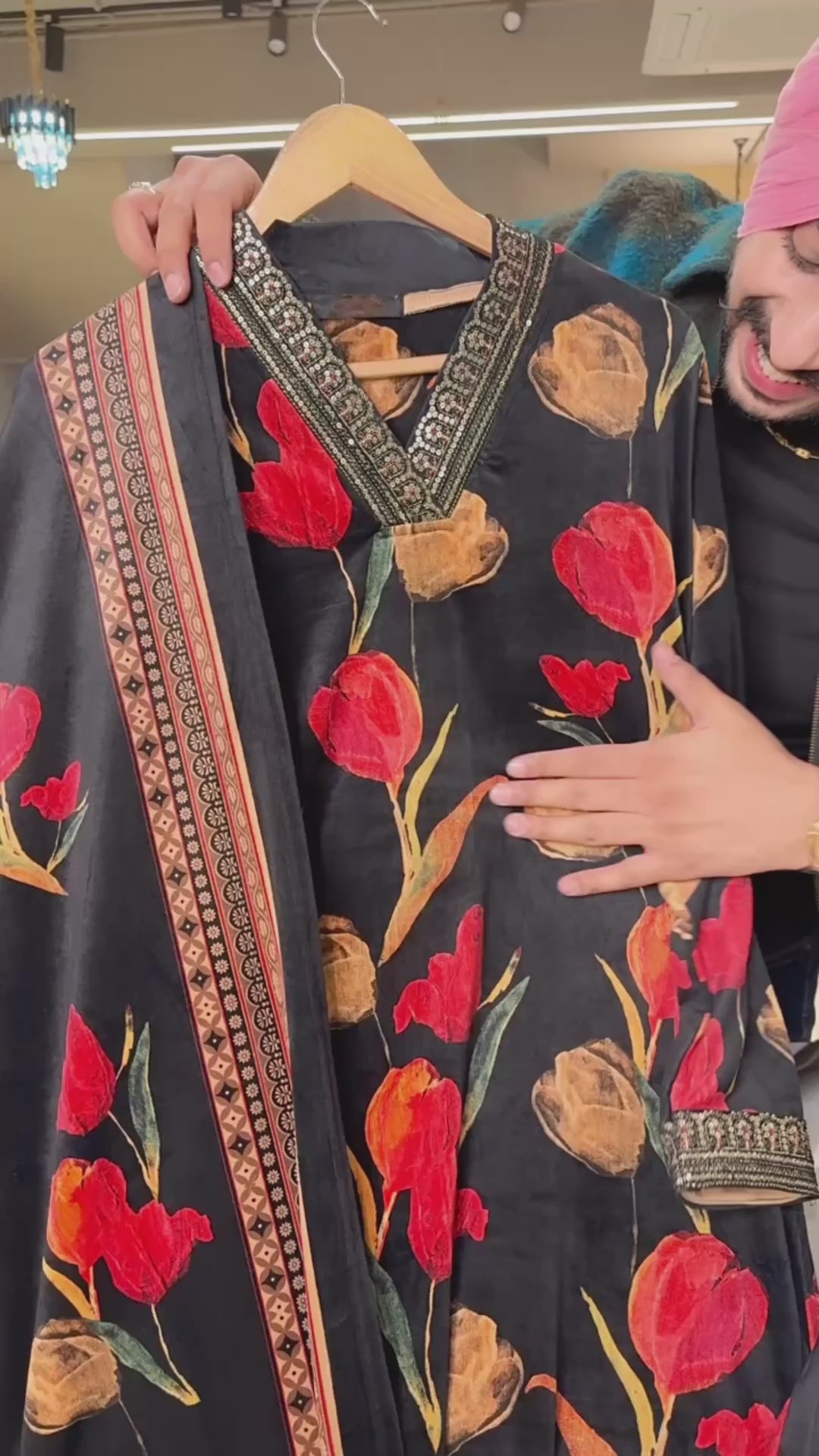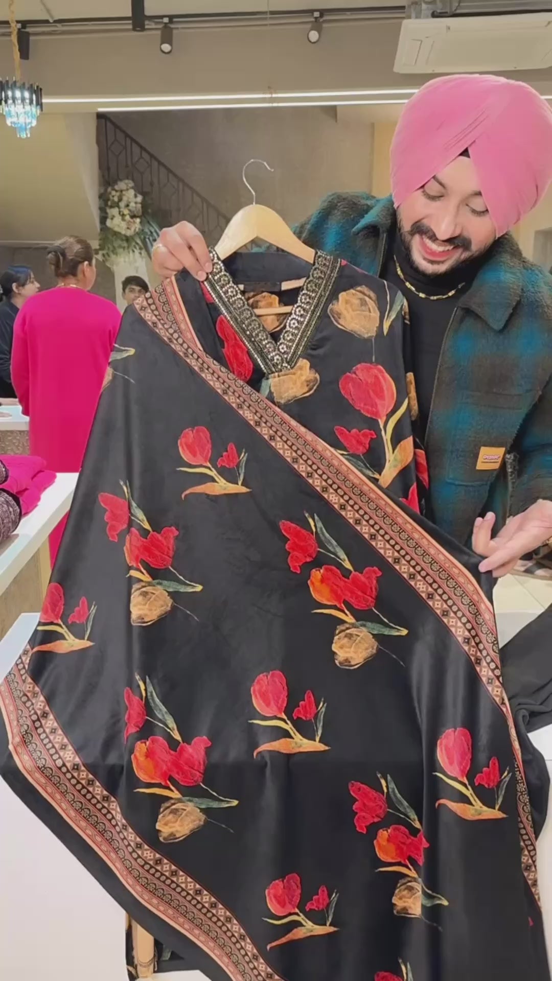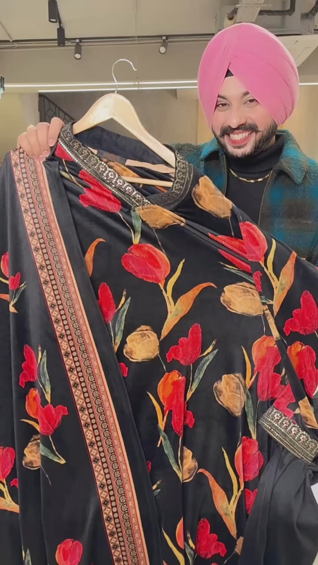 Black premium Strechable Velvet Digital Floral print suit with Beautiful Duppata