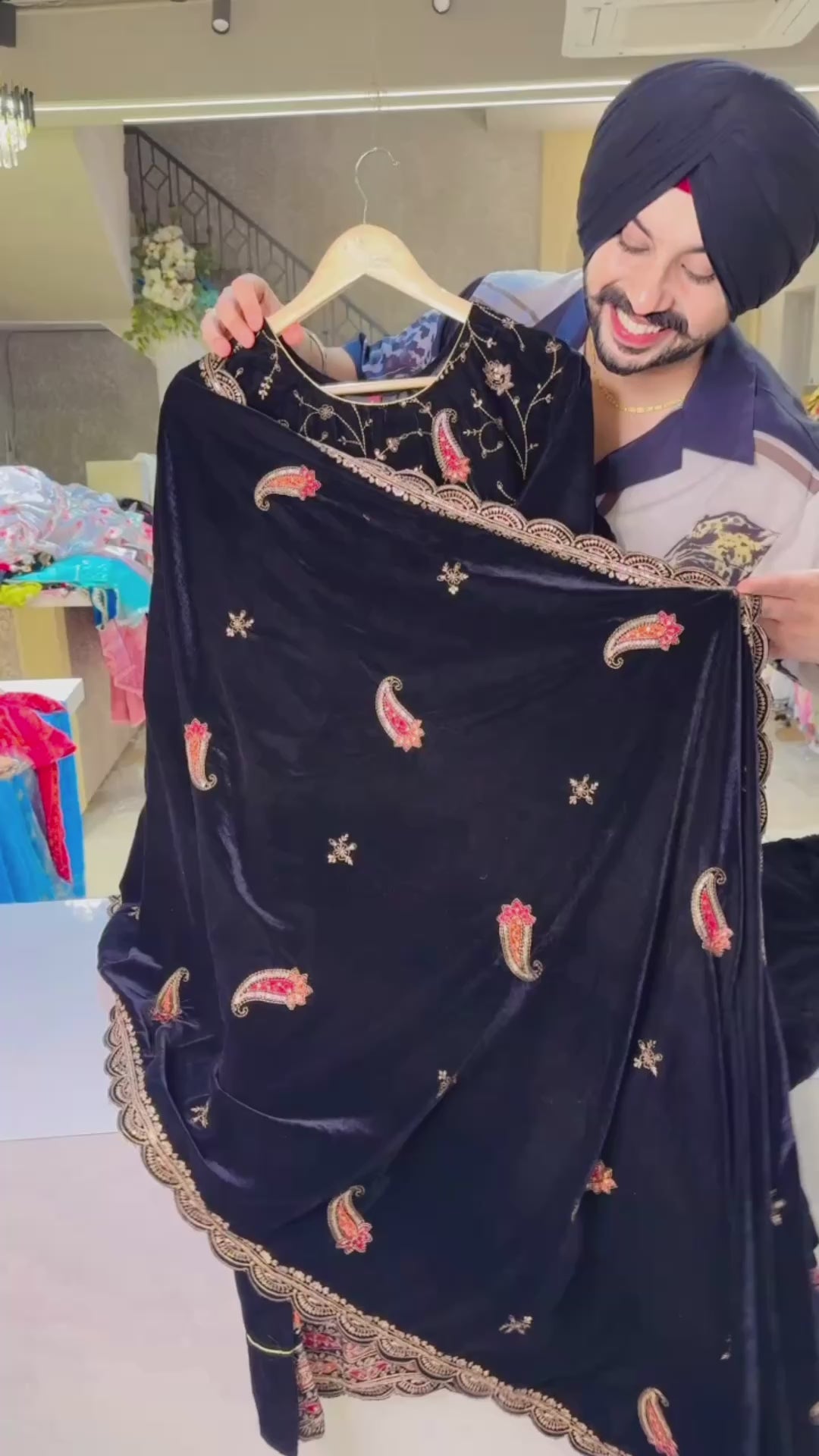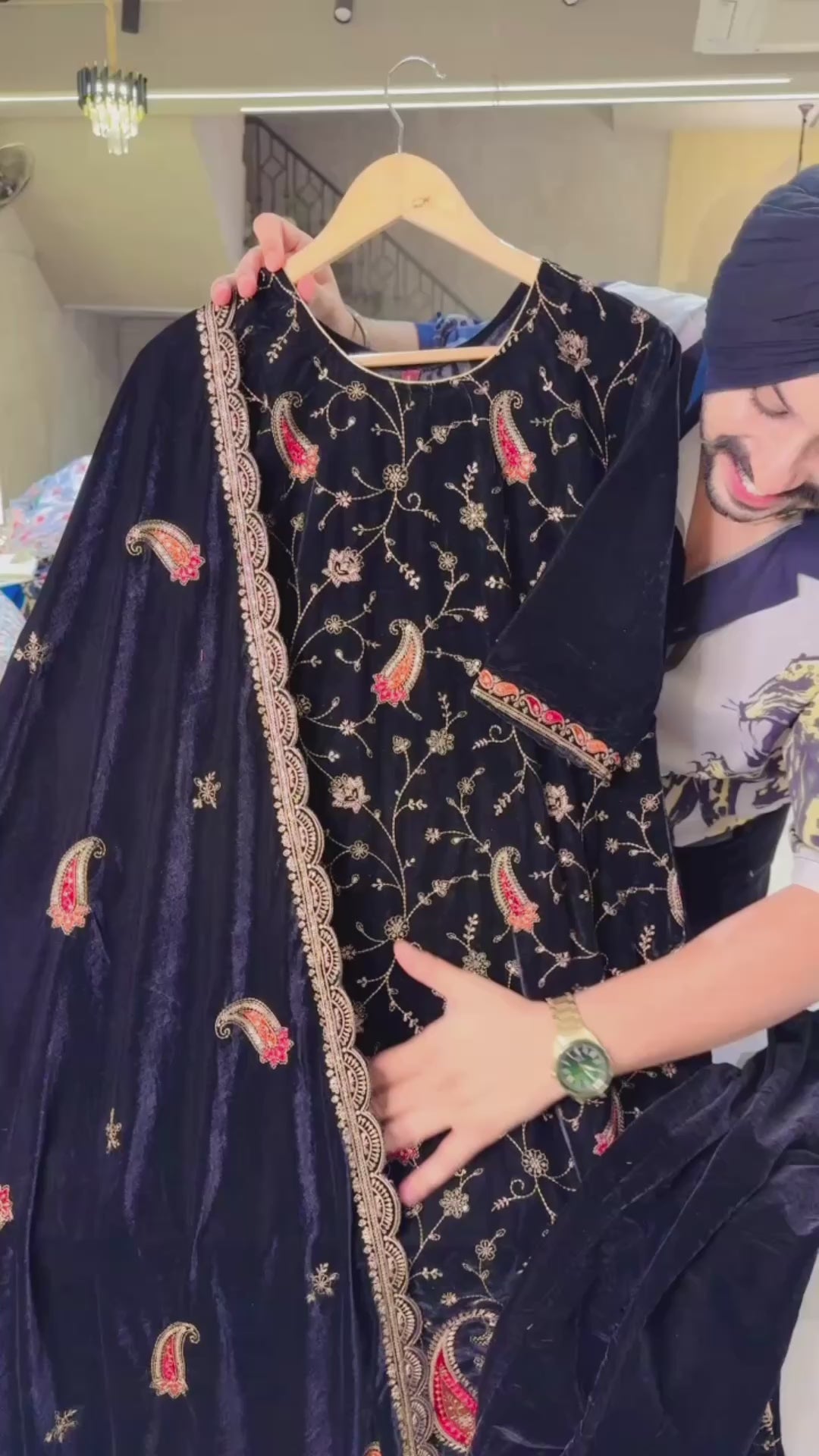 Black Velvet Fully embroidered Straight Suit with Embroidered Duppata