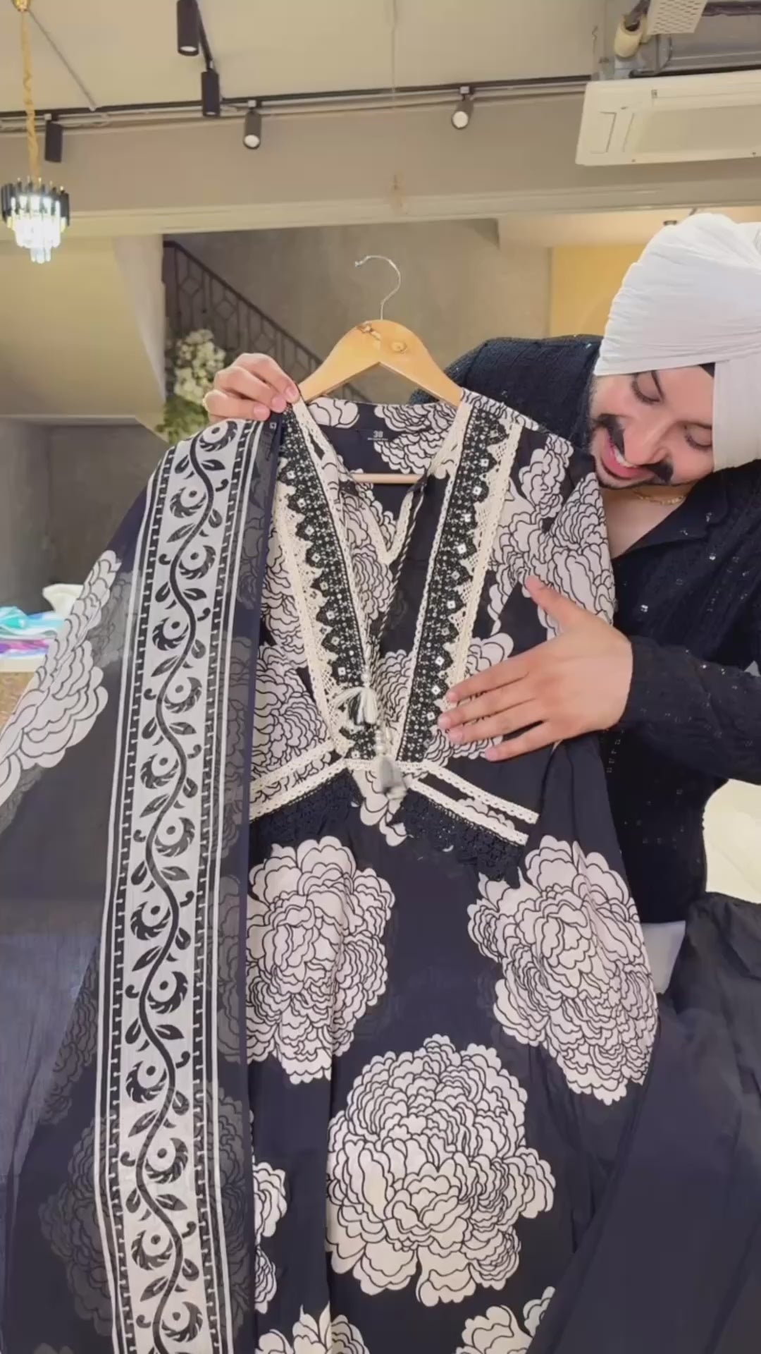 Black & off White Pure Cotton Indowestern Pakistani Suit with Crochet work on neck