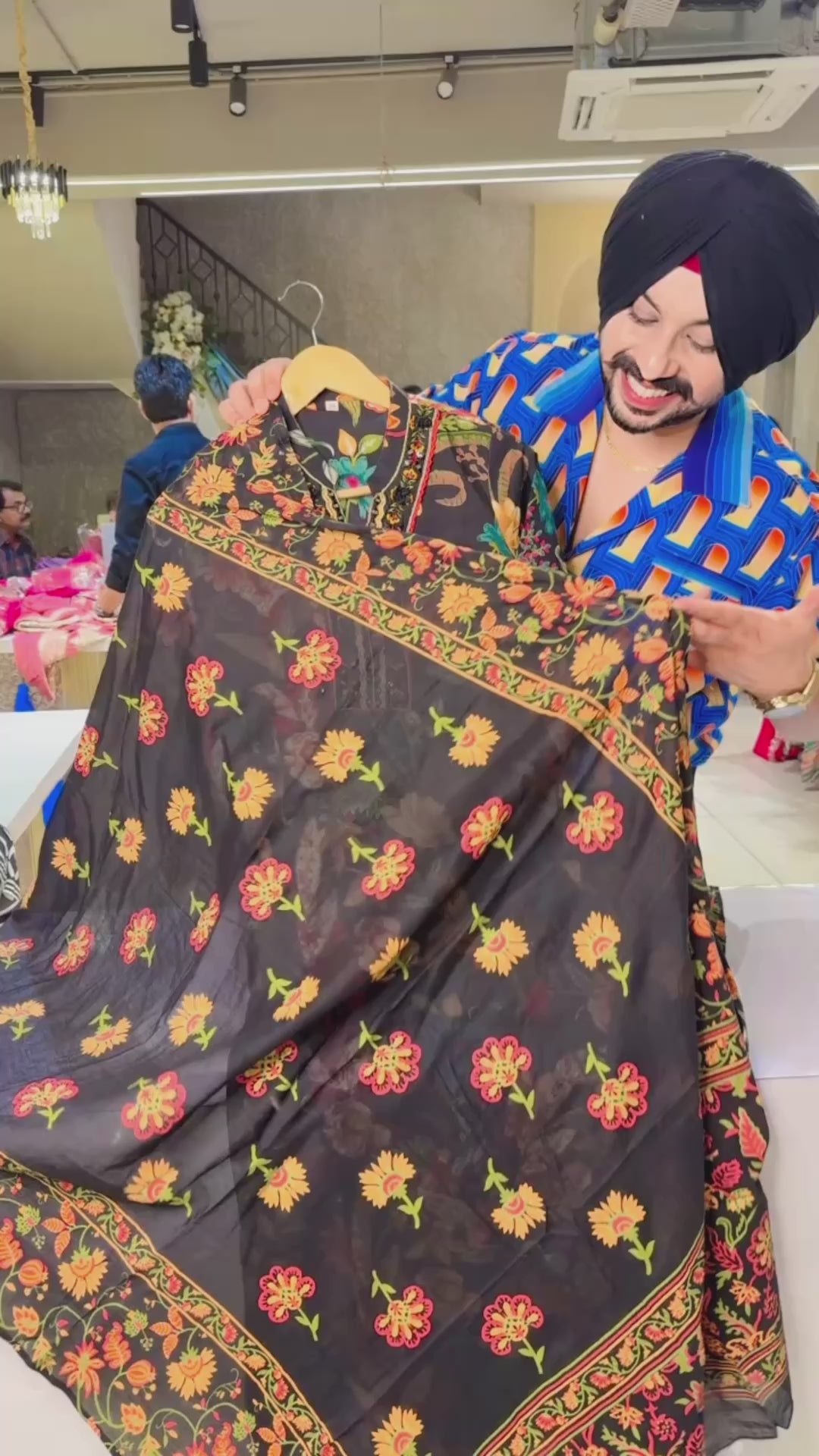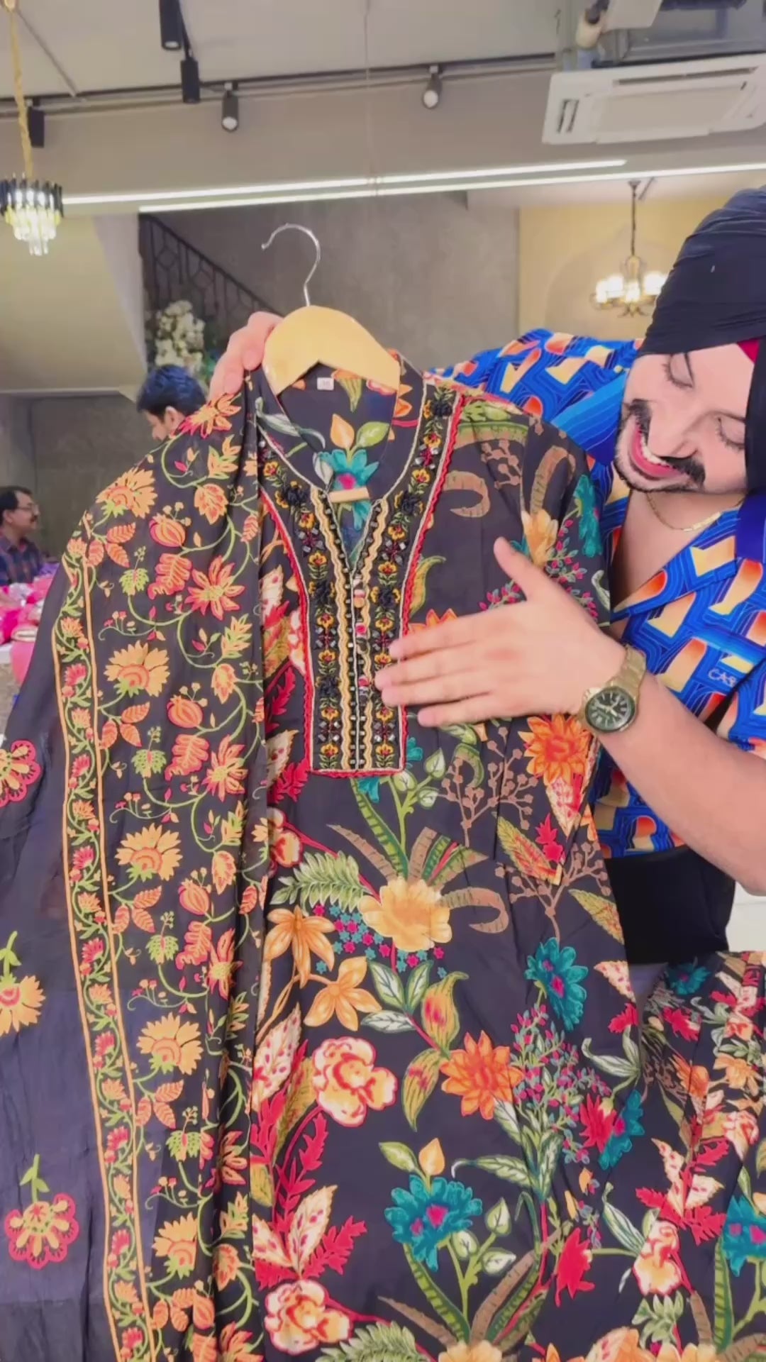 Black Pure Cotton Office wear Pathani suit with block printed Duppata