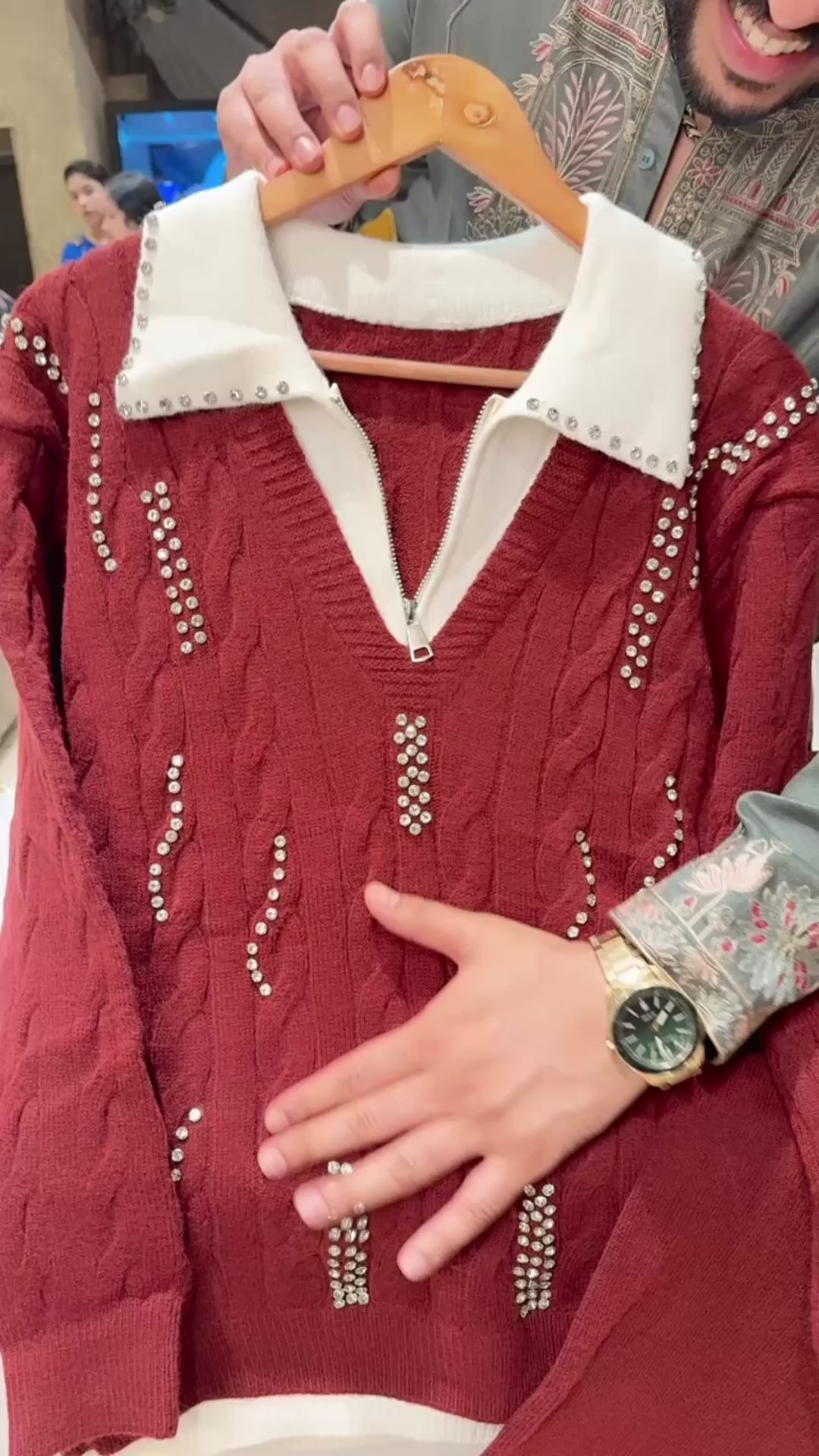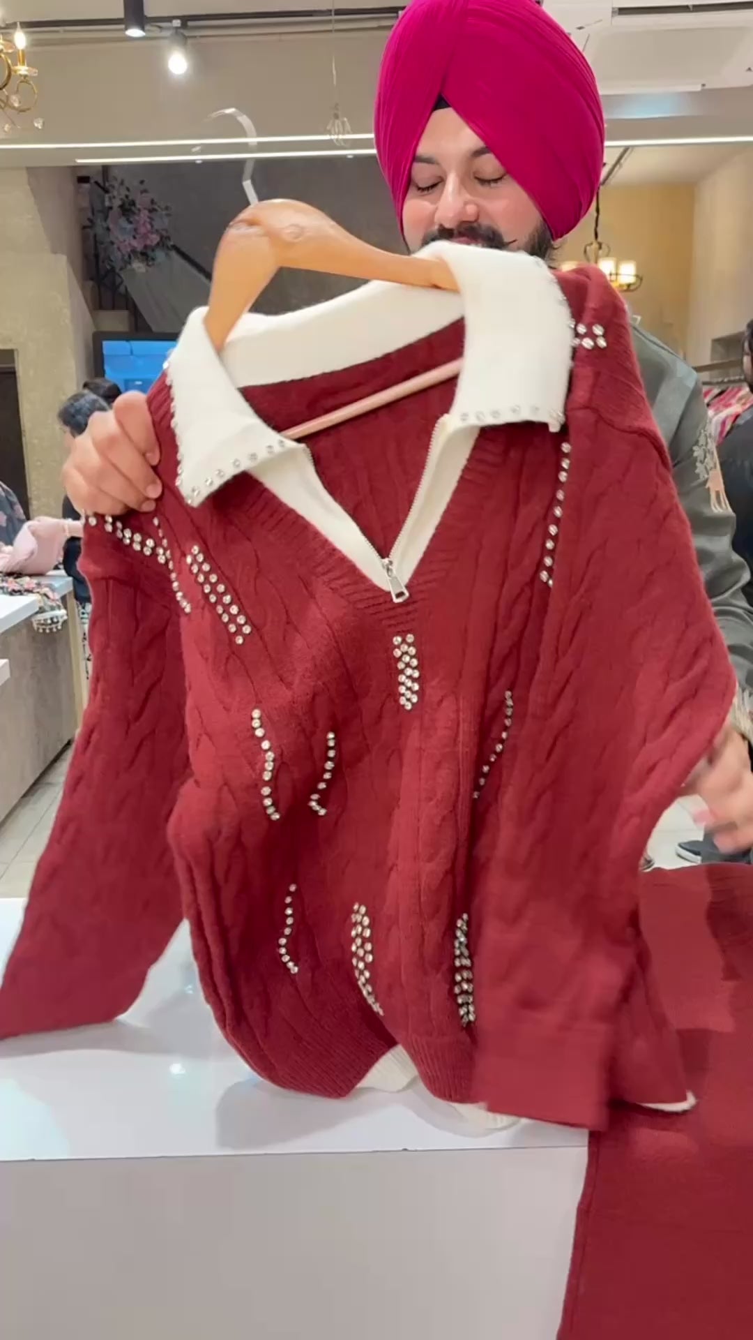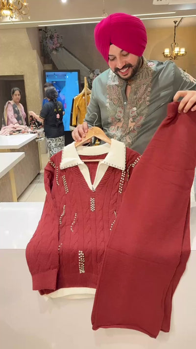 Rust Imported Woolen Heavy stone work Fully Strechable Party wear Coord set