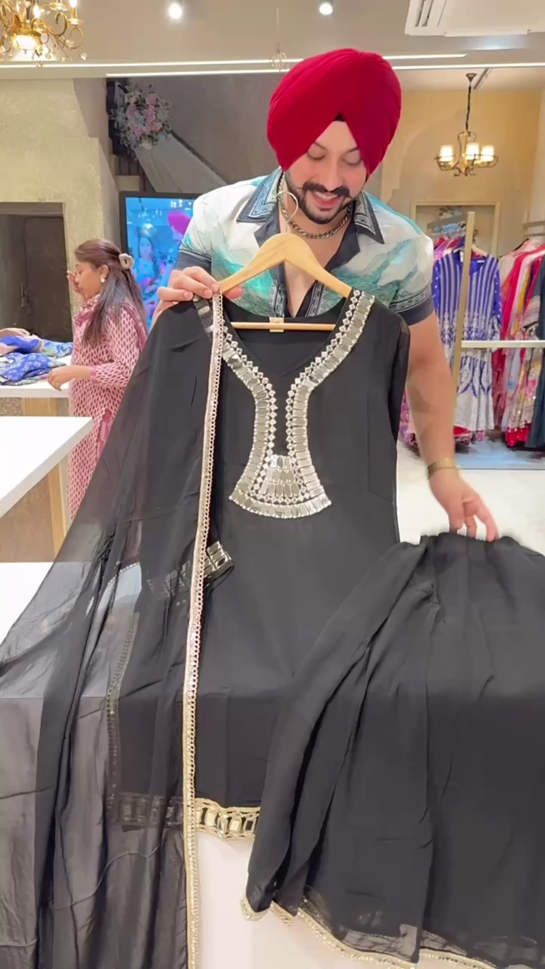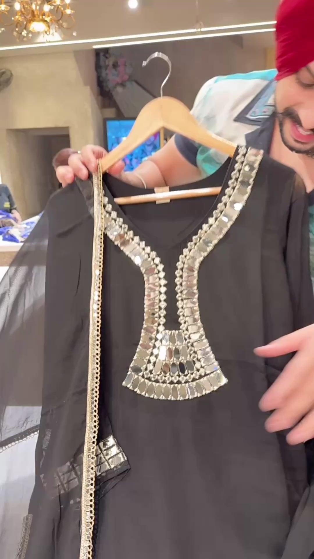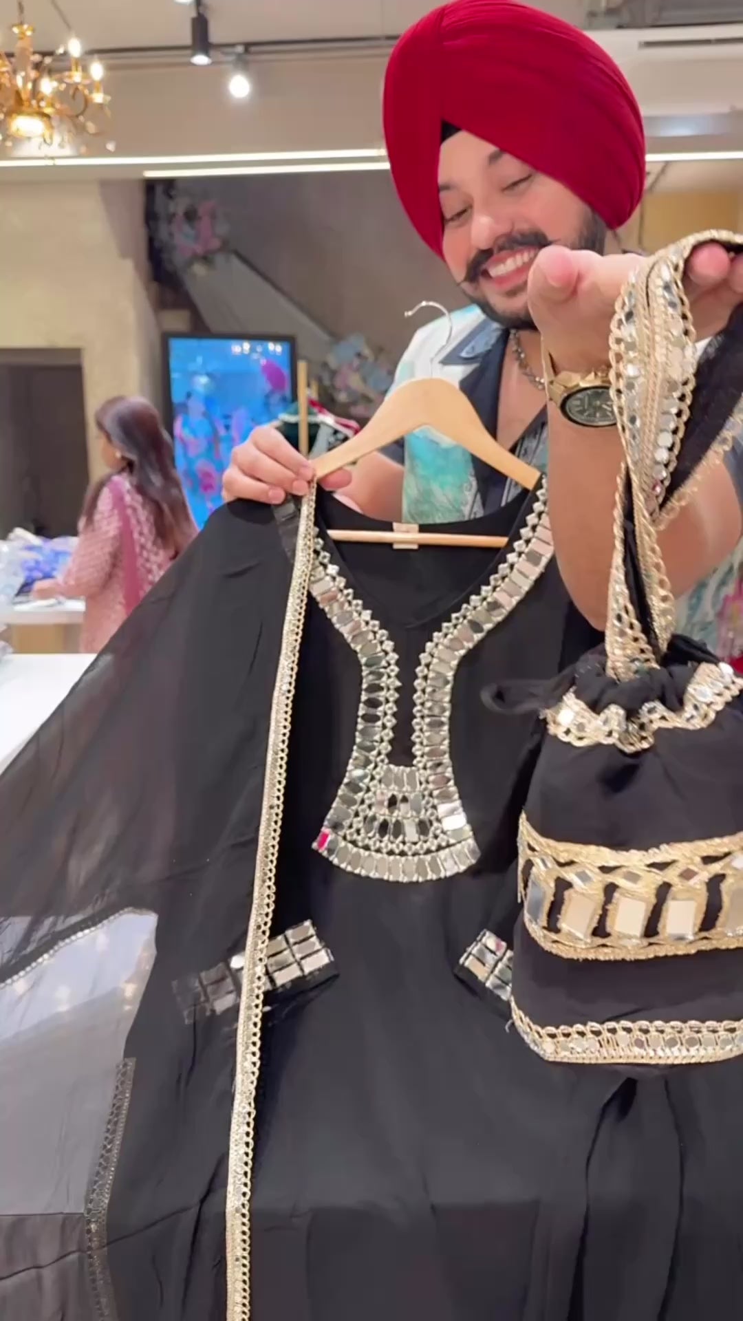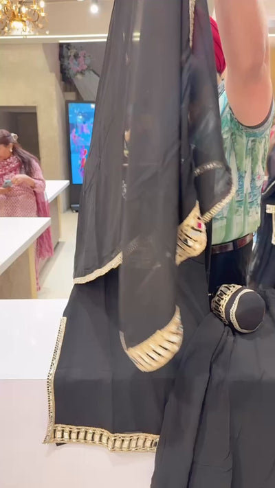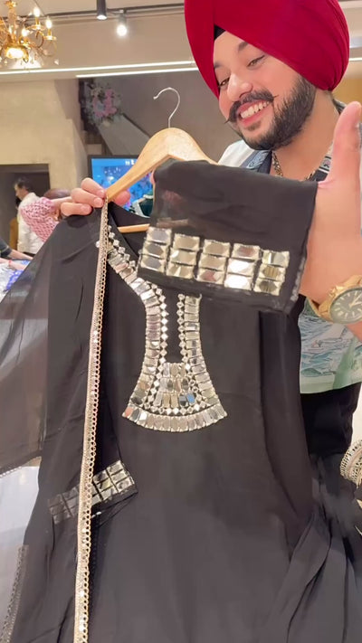 Black Georgette Heavy Mirror Work Sharara Set with Cute potli