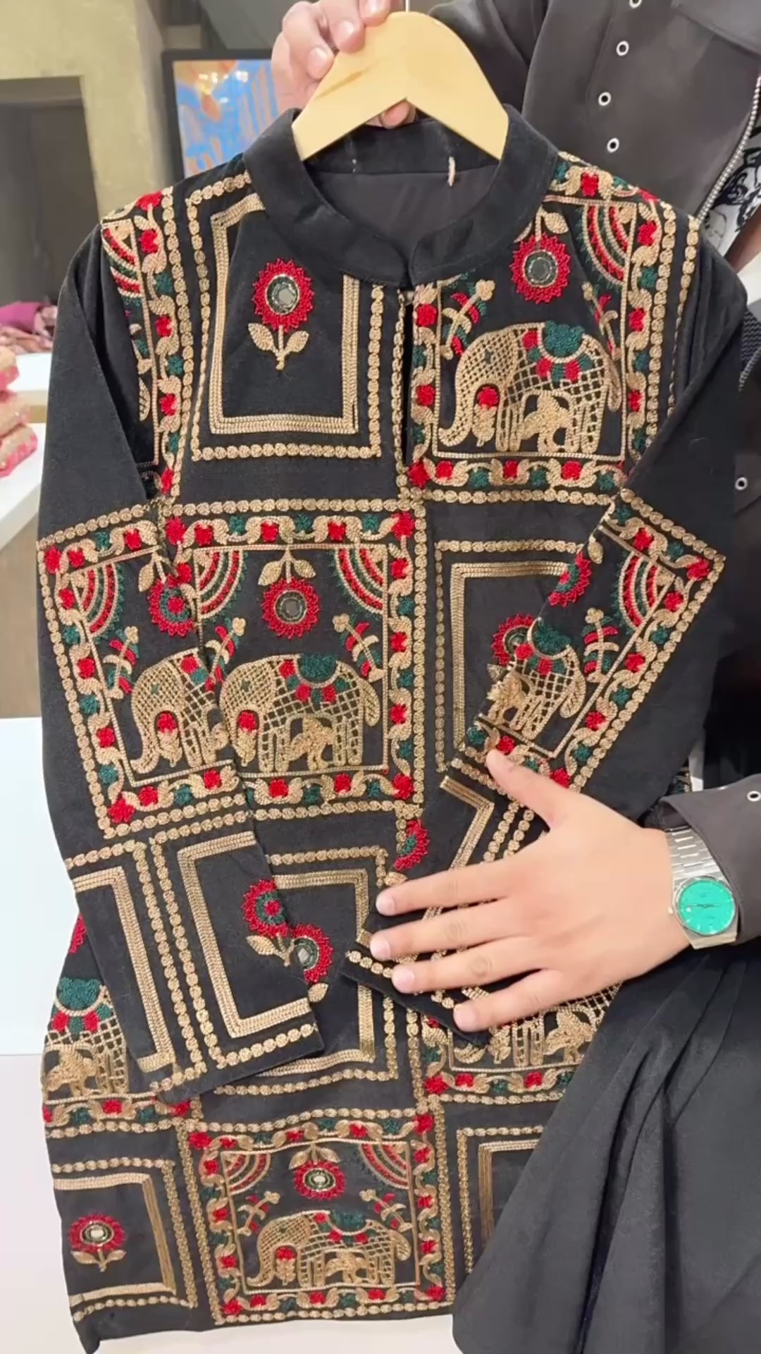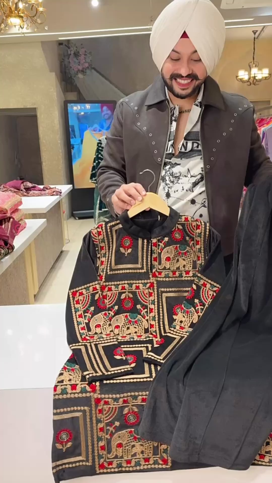 Black Premium Stretchable Velvet Heavy Embroidered Party Wear Coord sets