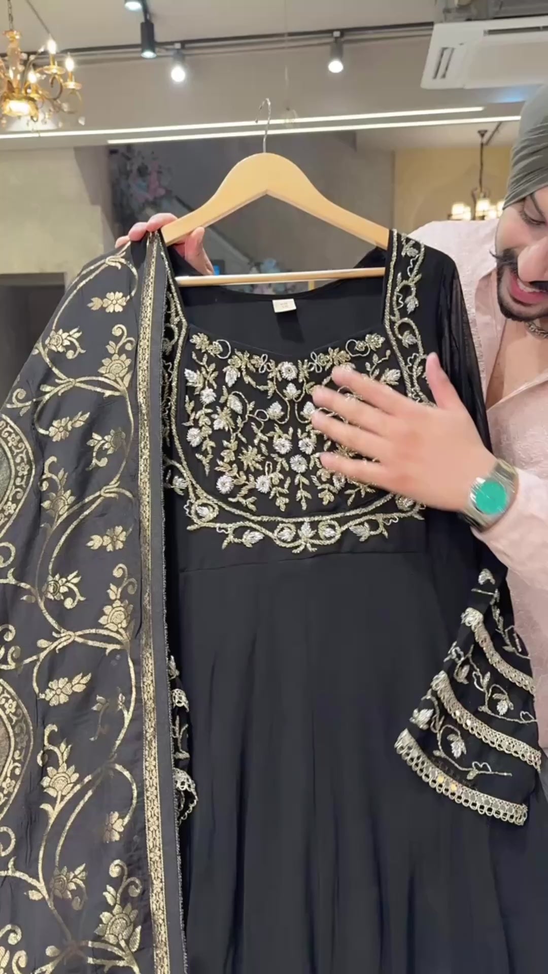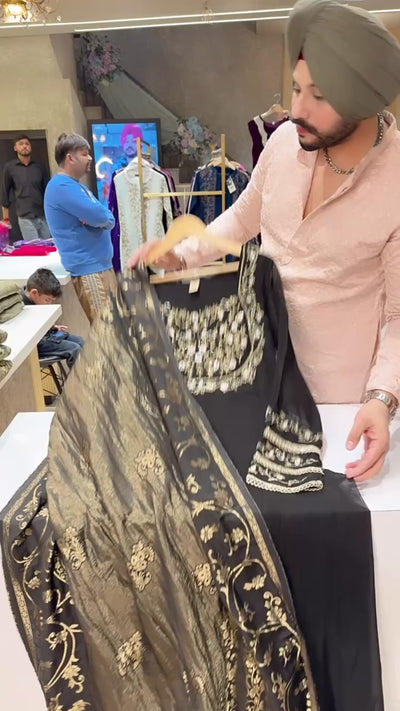 Black Georgette Party Wear Hand Embroidered Designer Neck Anarkali Gown with Beautiful Banarasi look Duppata