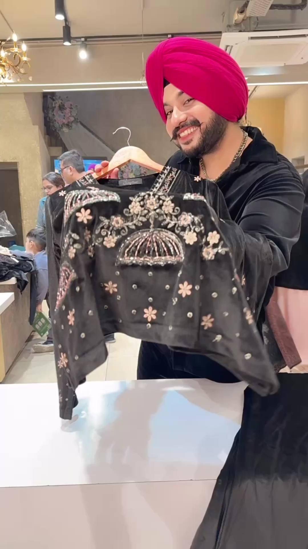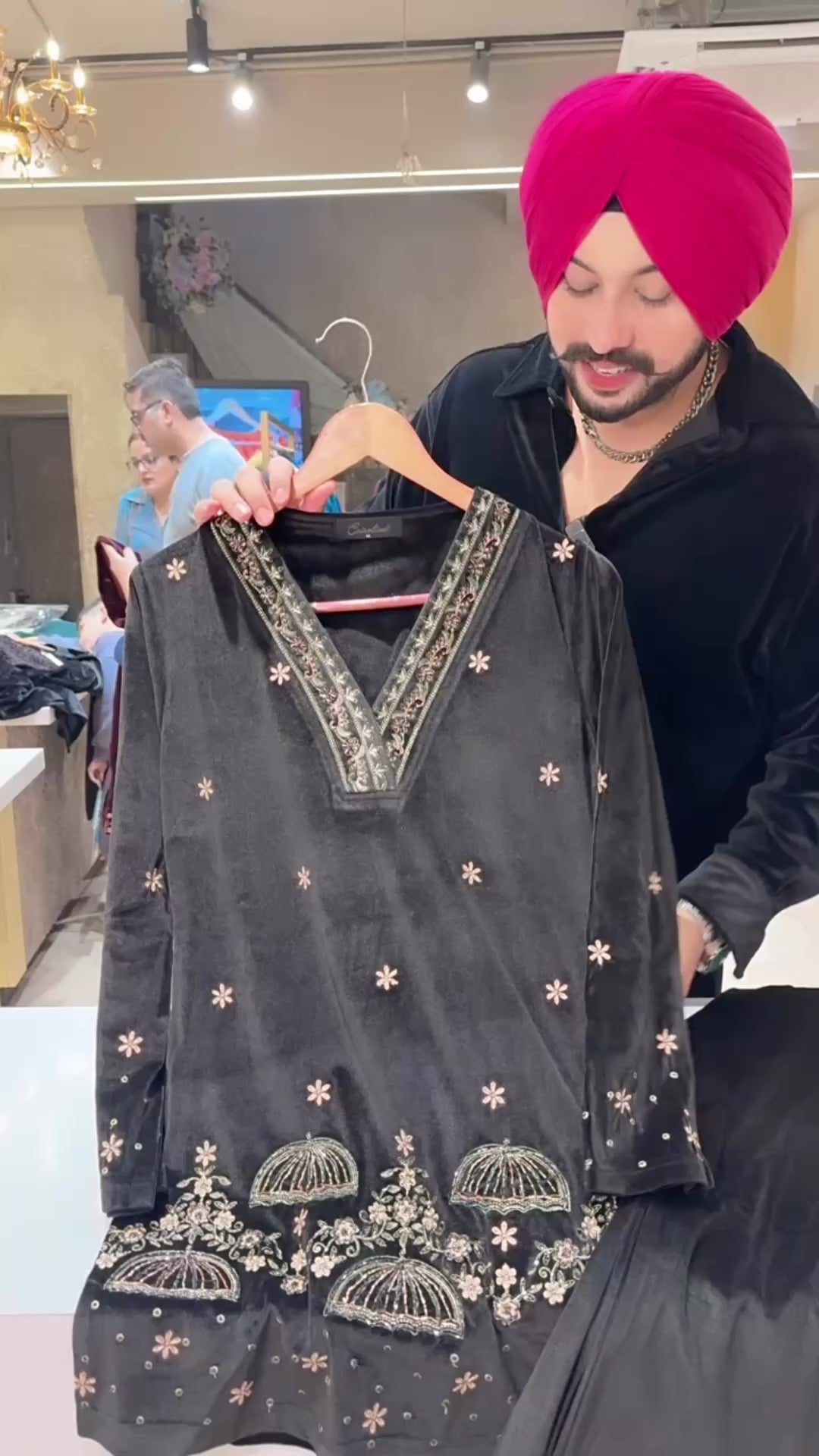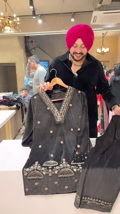 Black Heavy Stretchable Velvet Partywear Coord set with Heavy hand embroidery Work on Border