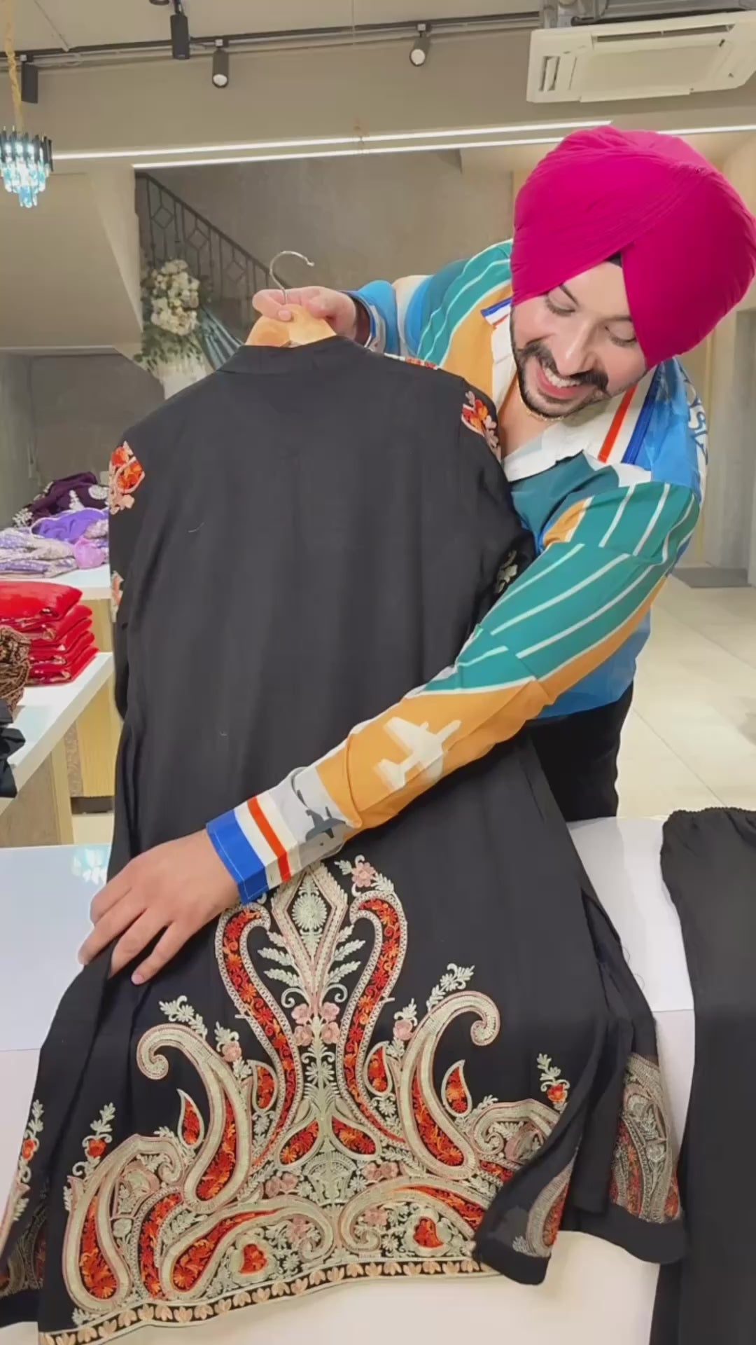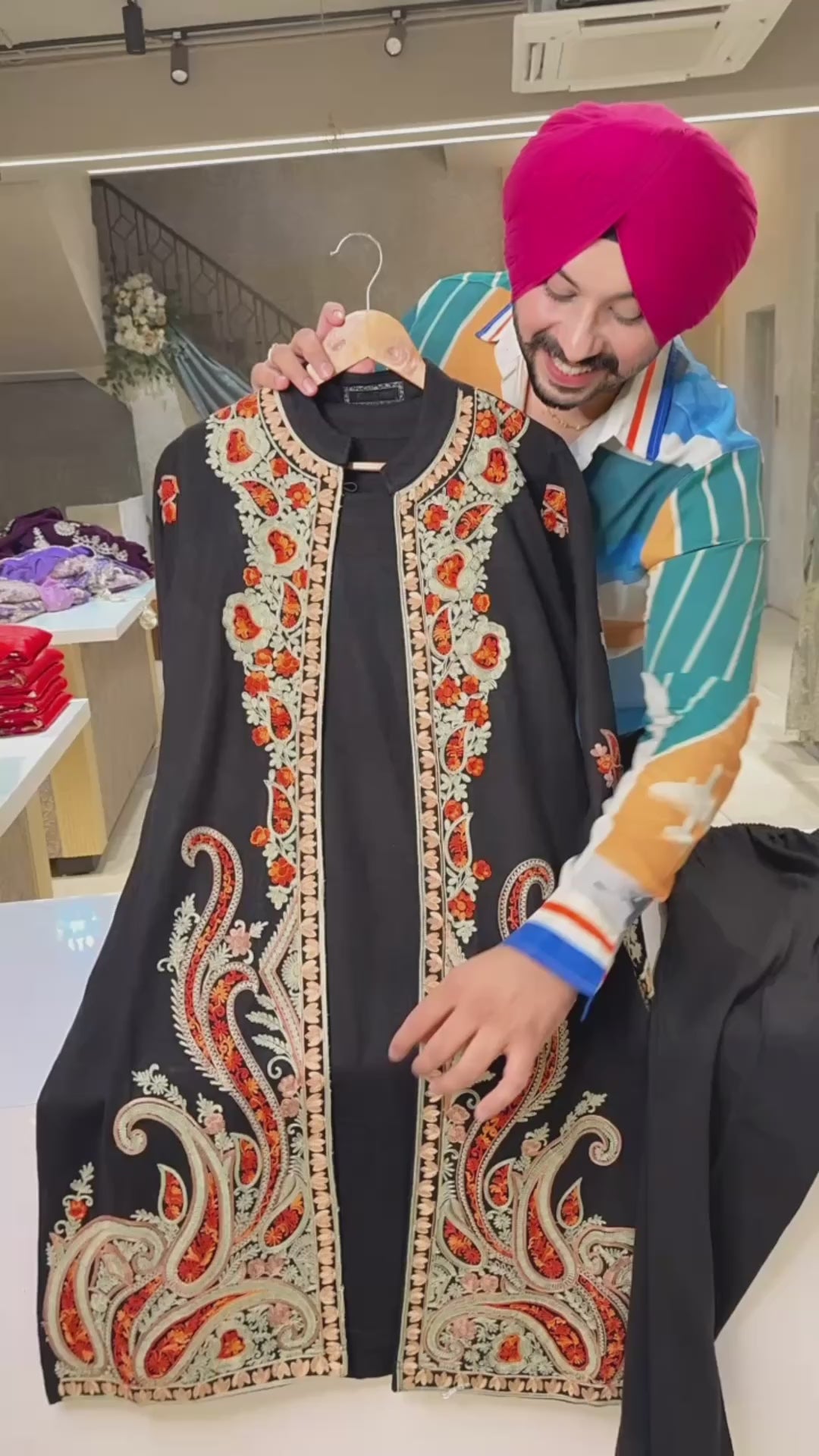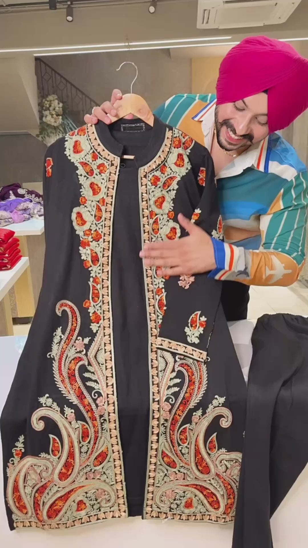 Black Premium Woolen Coord set with Heavy Kashmiri Embroidered Shrug