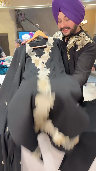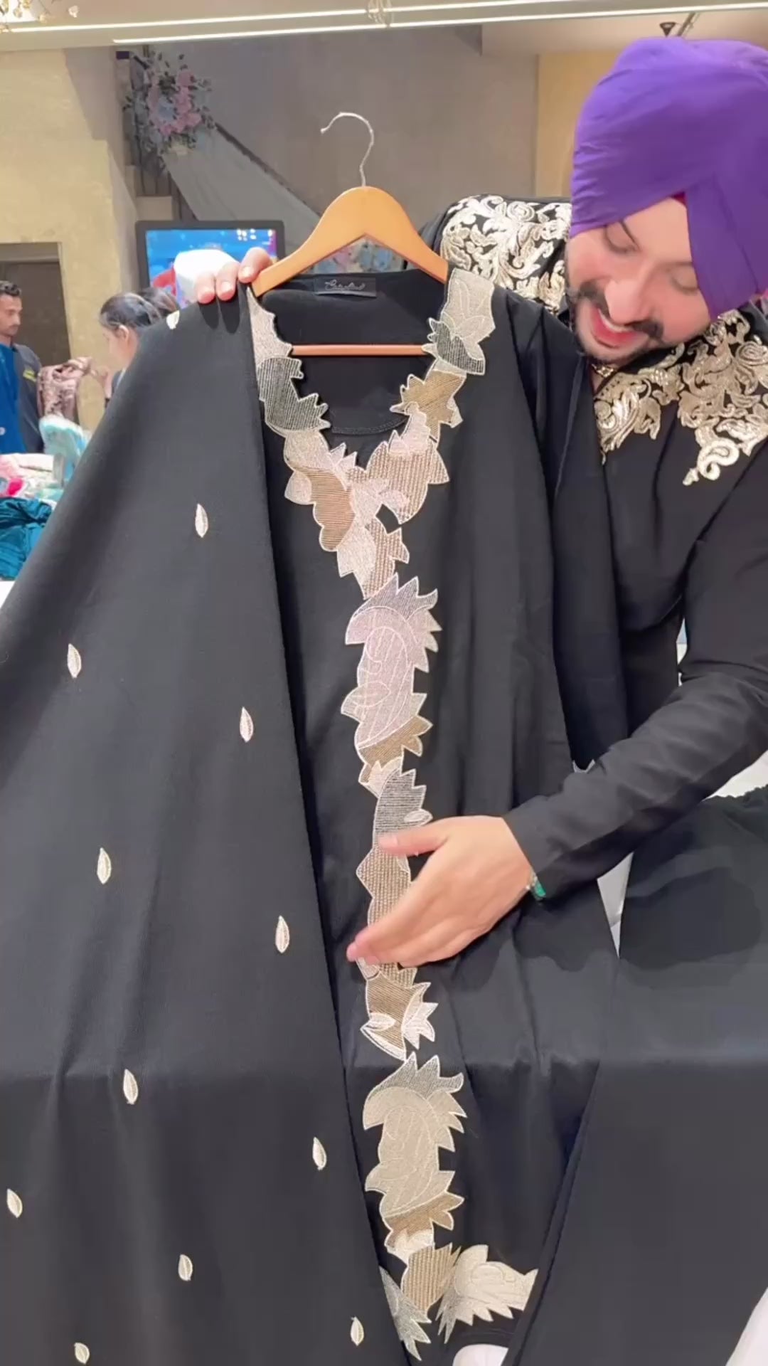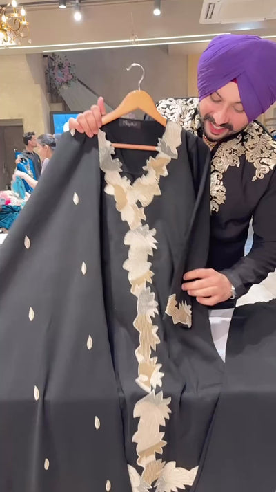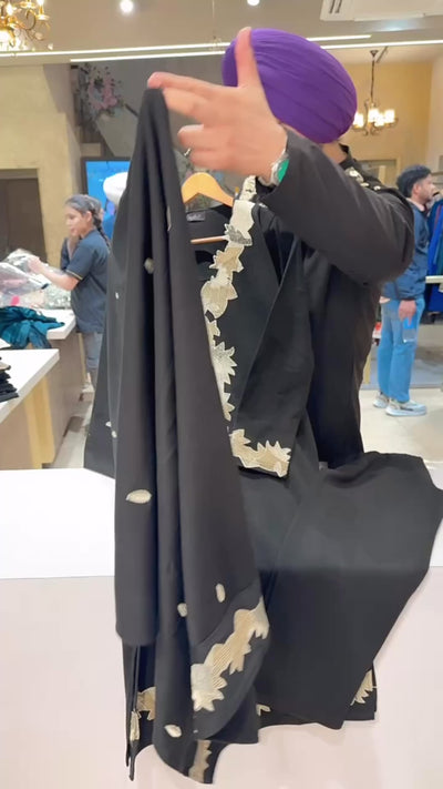 Black Woolen Designer neck Straight Suit with Beautiful Embroidery work On It