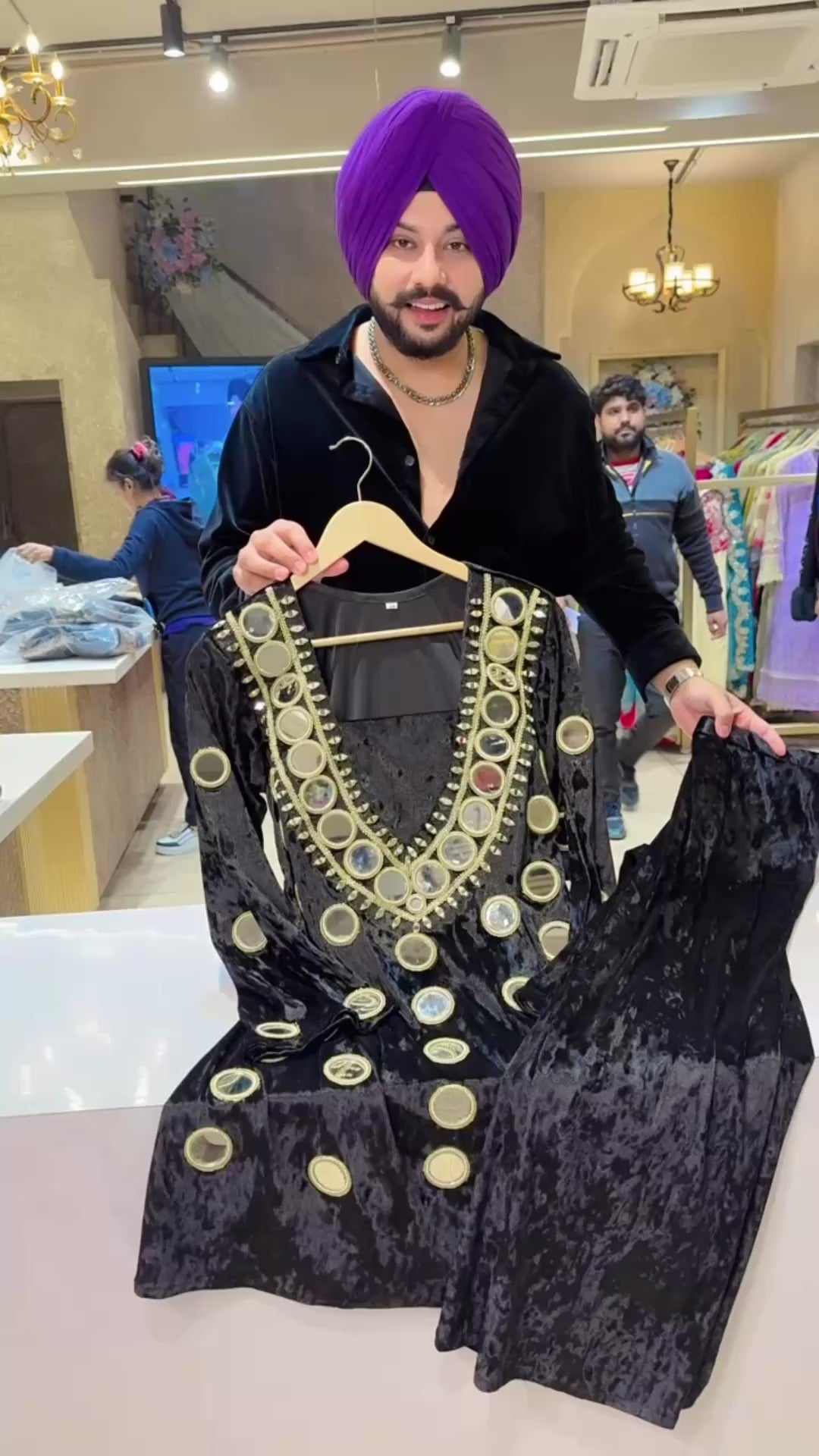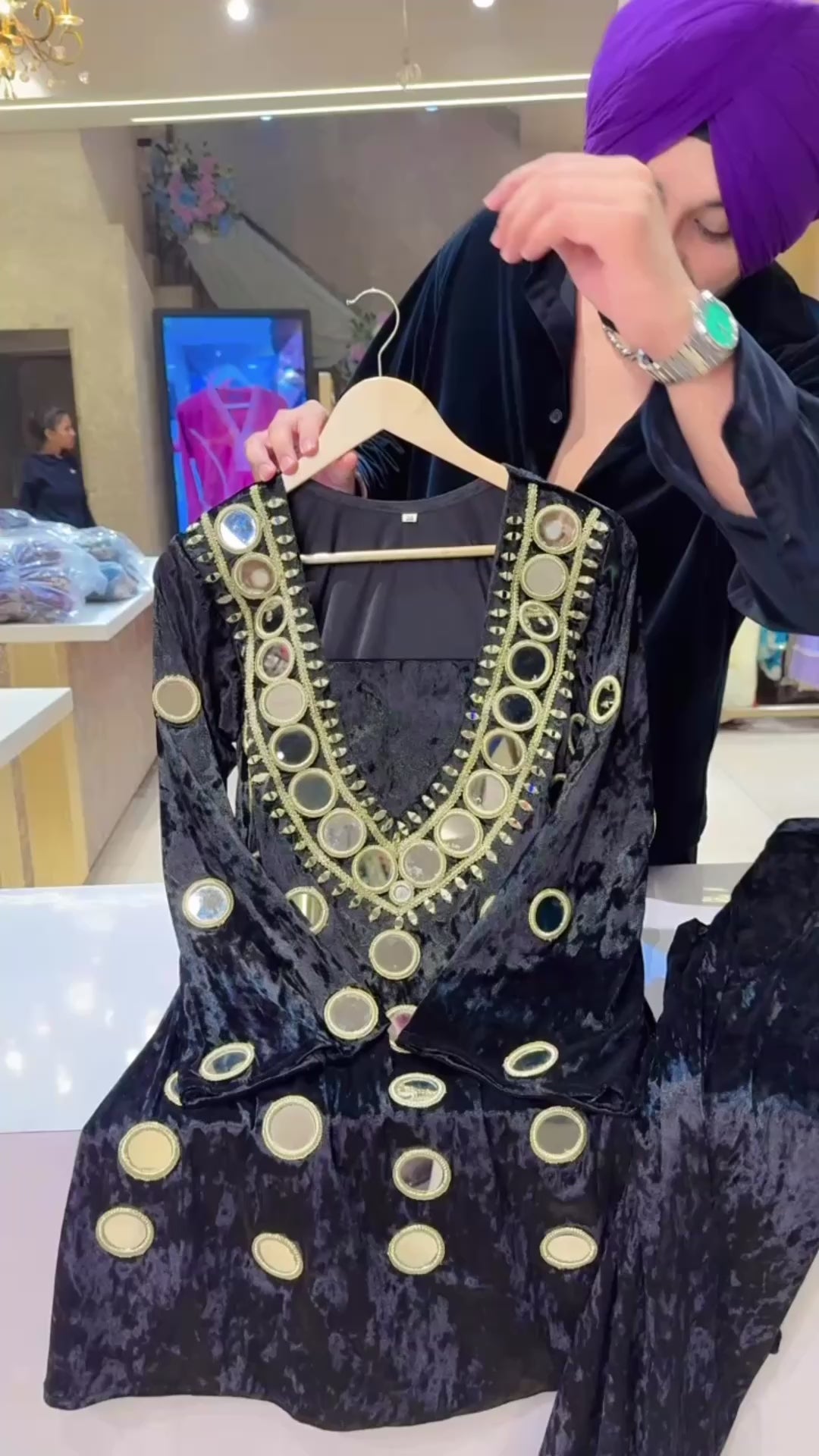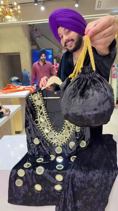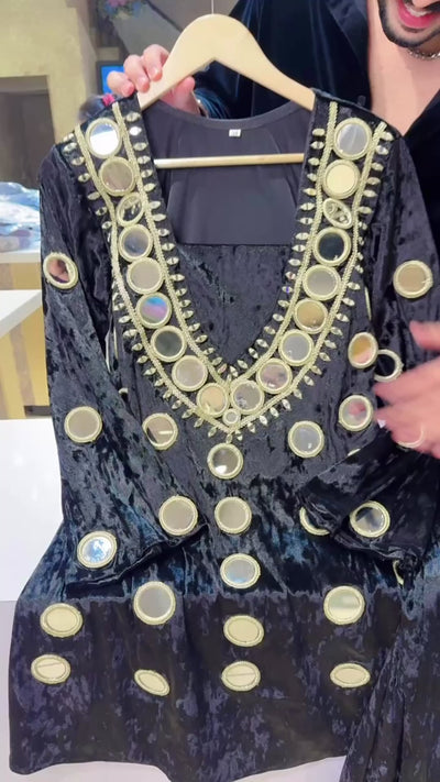 Black Premium Stretchable Velvet Heavy Mirror work Paplum Coord set with Stylish Potli