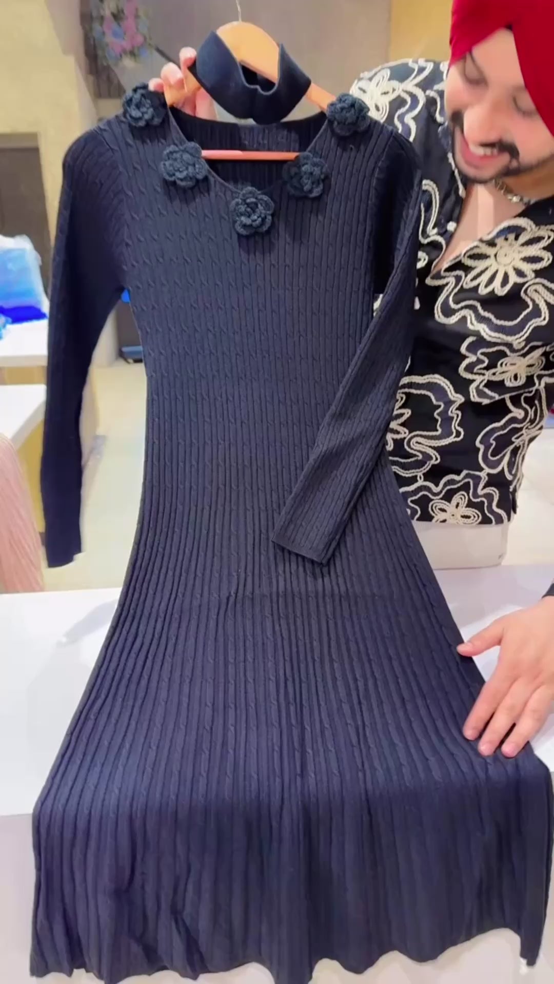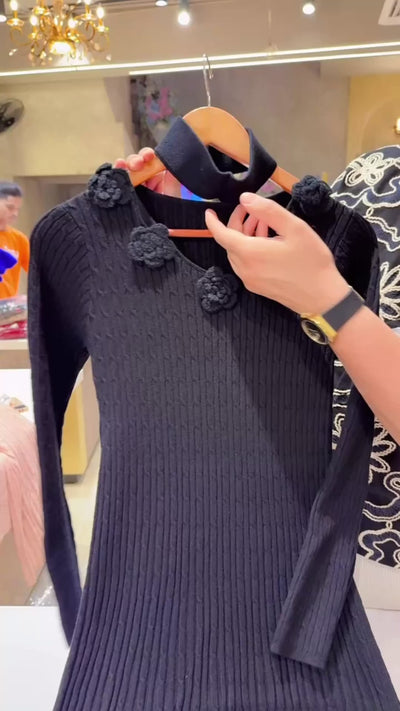 Black Colour Imported Woolen Fully Strechable knee Length Dress with Stylish Neck Band