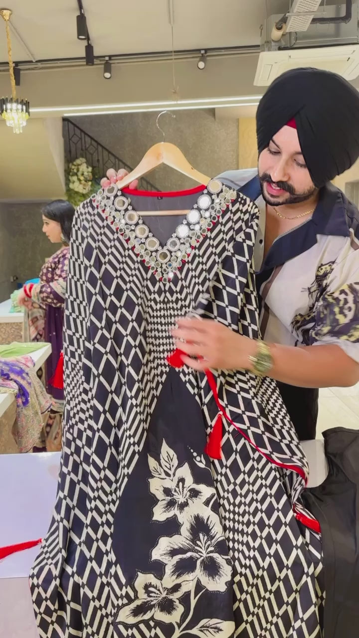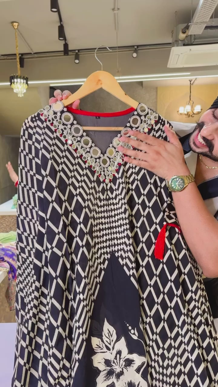 Black Crepe kaftan Coord set with Mirror handwork on neck