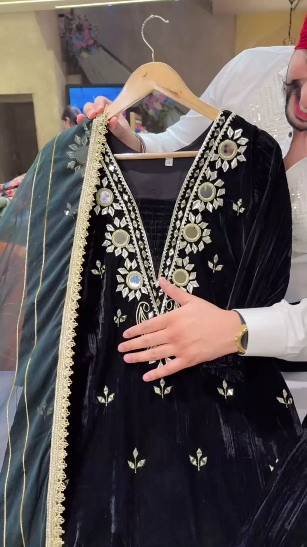 Black Crush Velvet Mirror & Gotta Work Straight Suit with Beautiful Chiffon Duppata