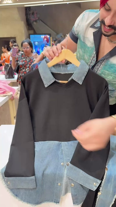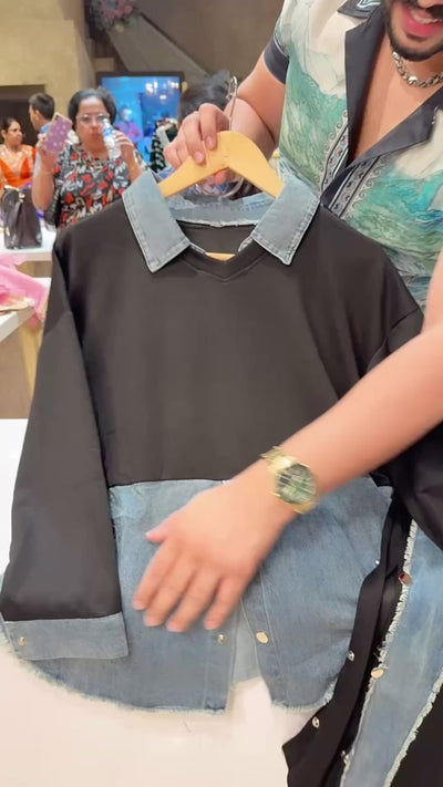Black Fully Stretchable Pre-Winter Baggy Coord set with Side Slit Pants