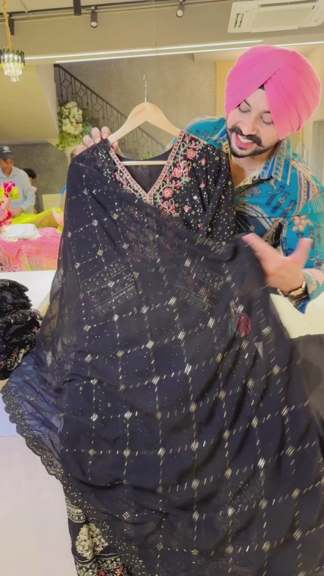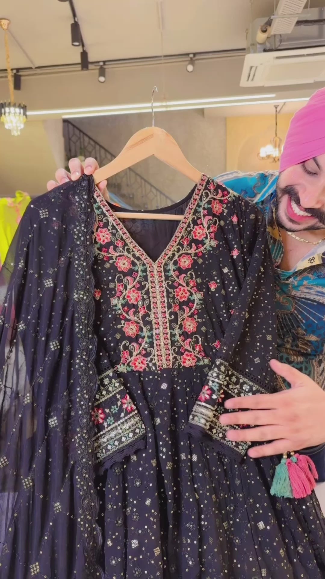 Black Georgette Fully embroidered Anarkali Suut with embroidered pants & Duppata