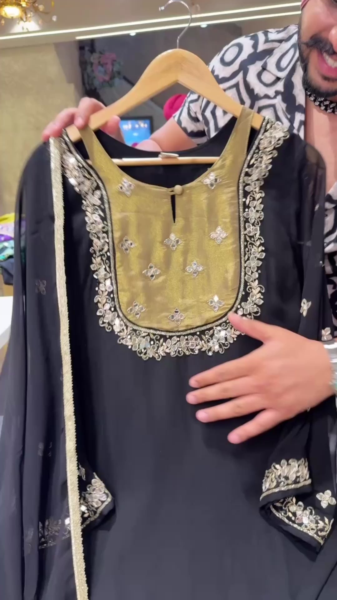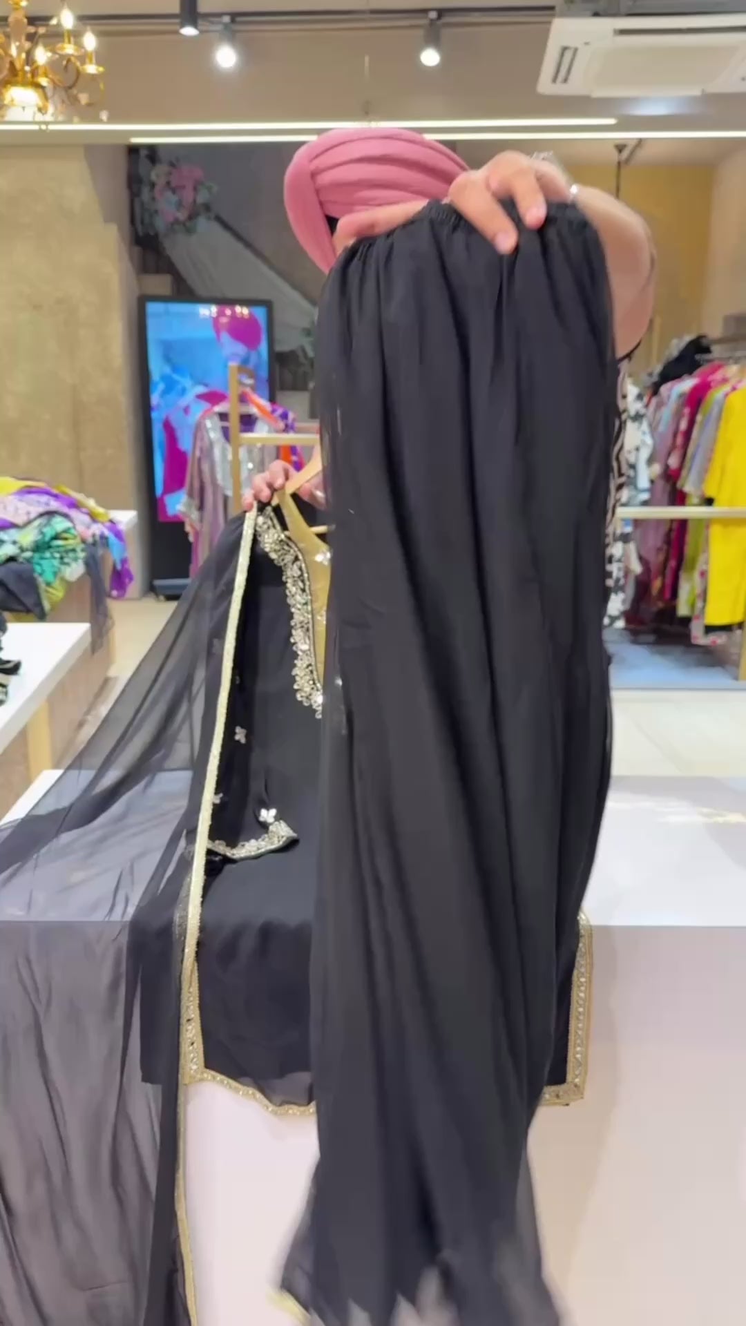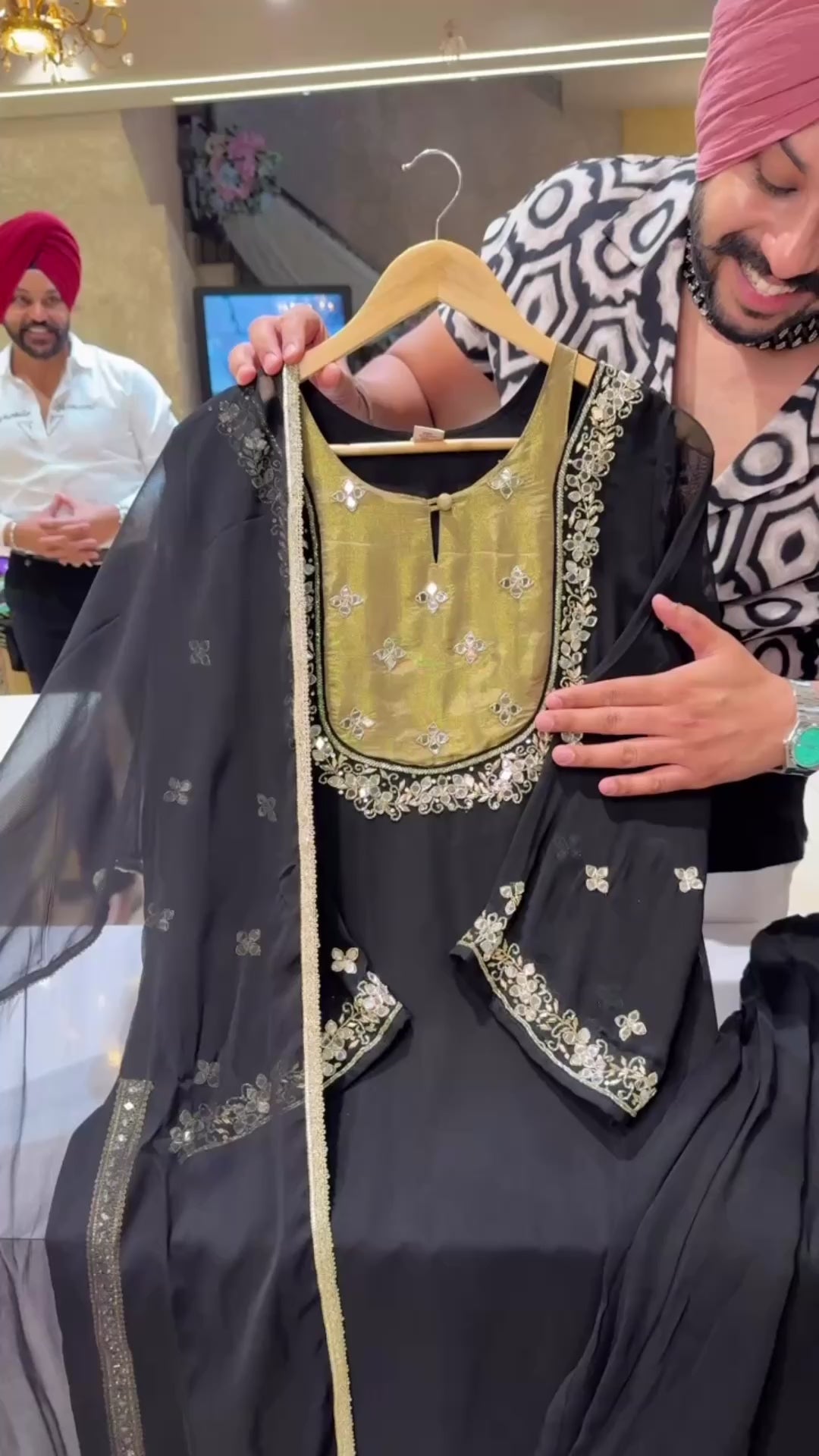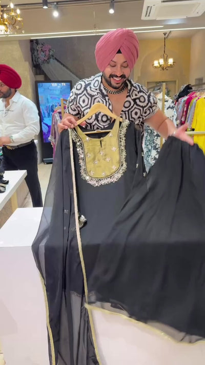 Black Georgette Hand embroidered & Mirror Work Designer Neck Partywear Sharara set
