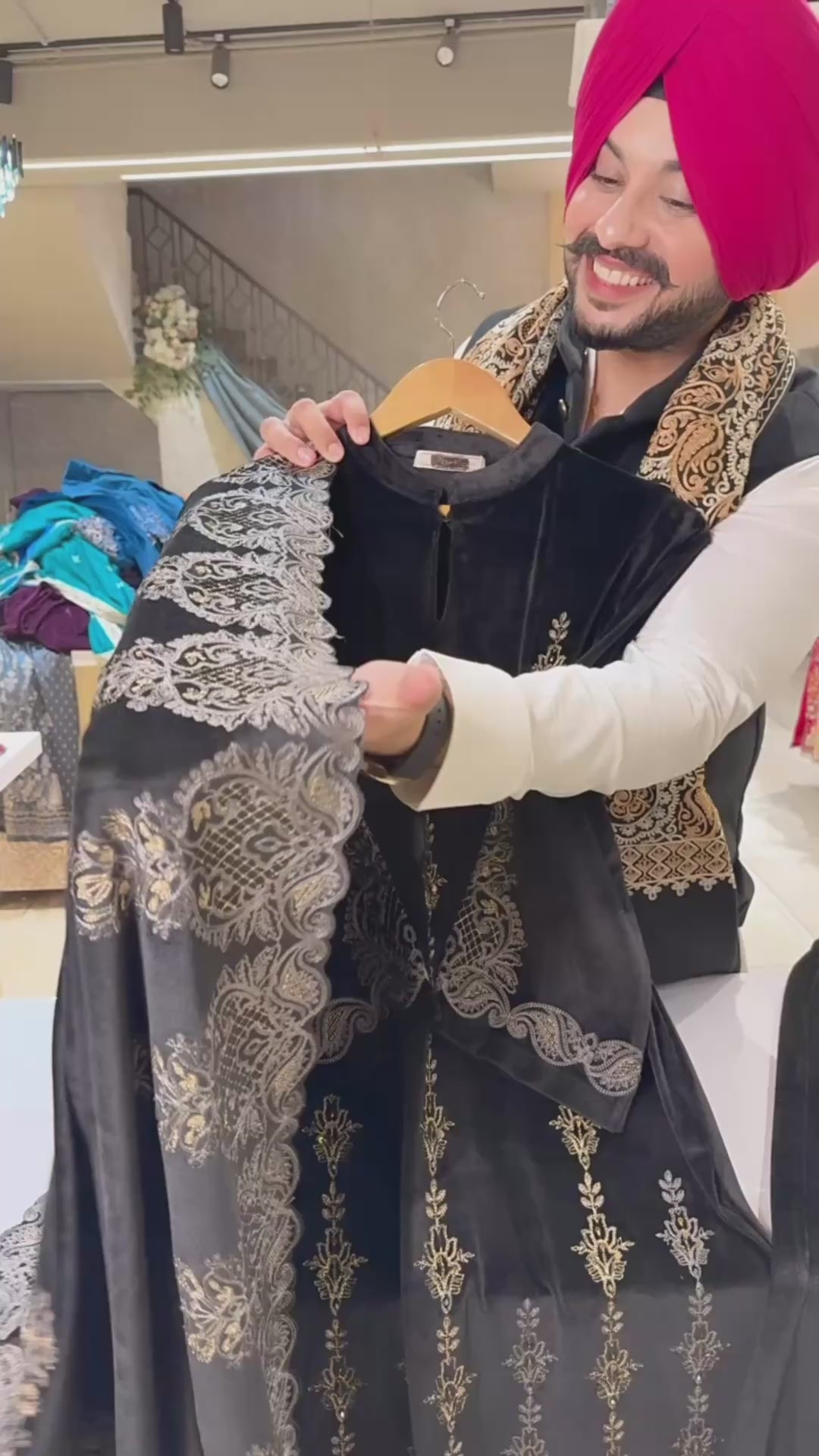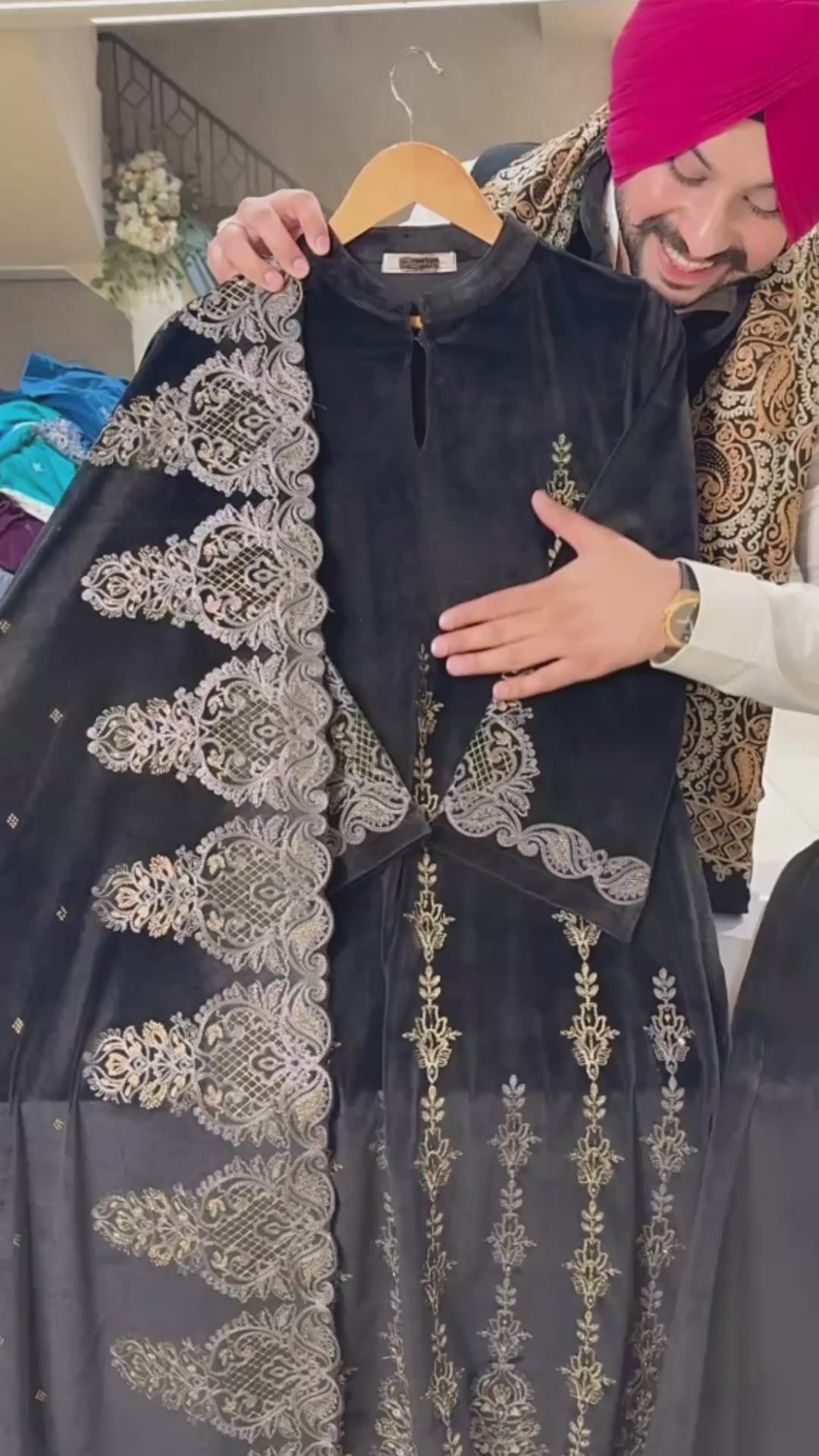 Black Heavy Velvet Fully Stretchable Straight Suit with heavy Embroidered Duppata