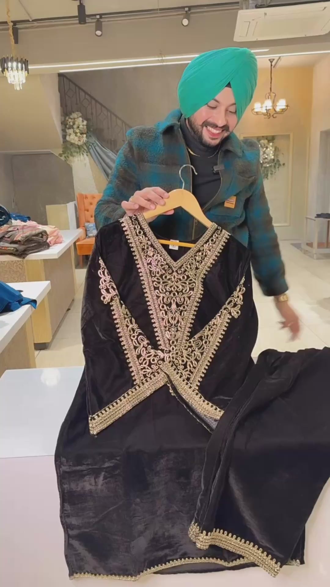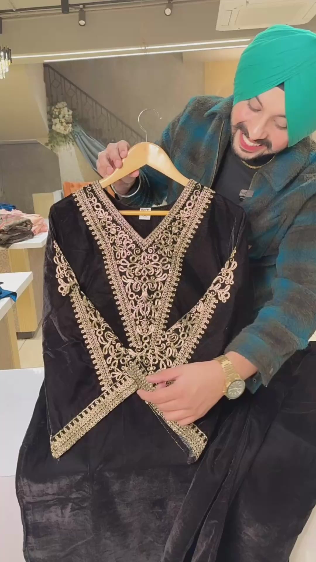 Black Premium Velvet Pakistani Coord set with Beautiful Embroidery work on neck & bell Sleeves