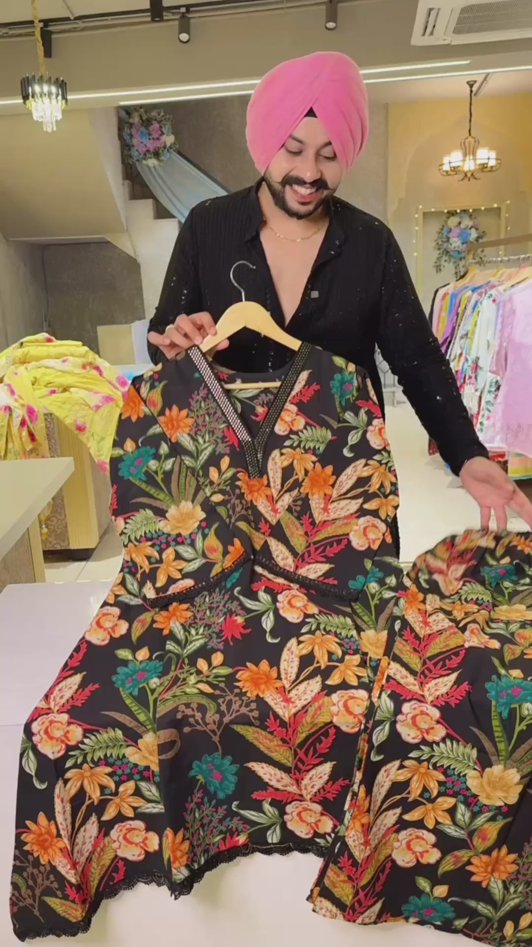 Black Pure Cotton Floral Print Airport Look C-cut Coord set