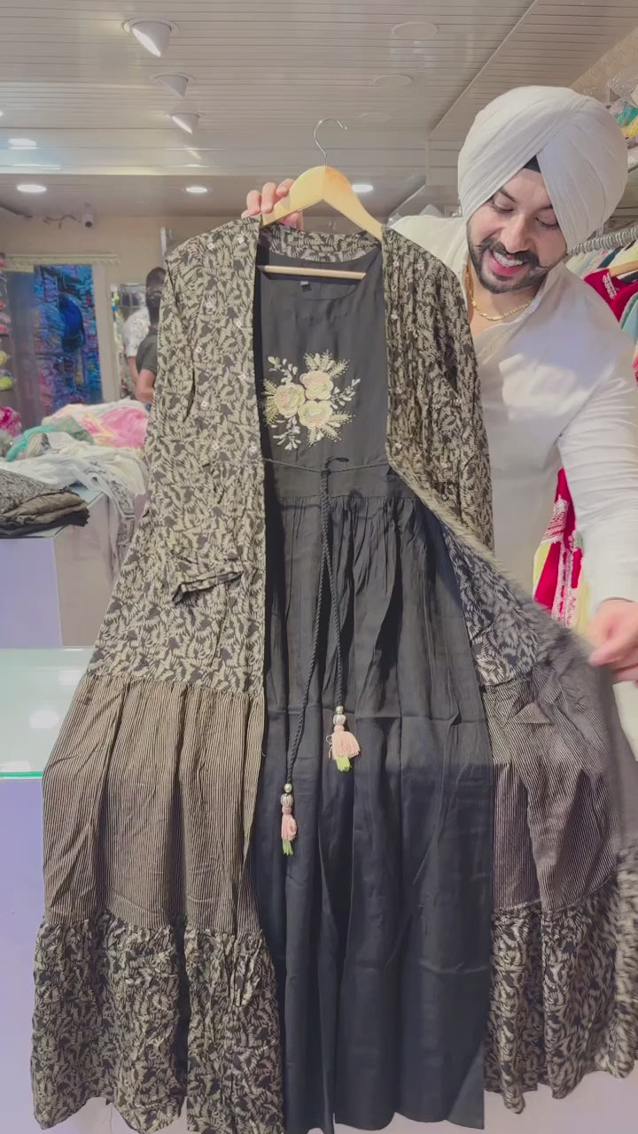 Black Rayon Indowestern Embroidered Dress with Stylish Shrug