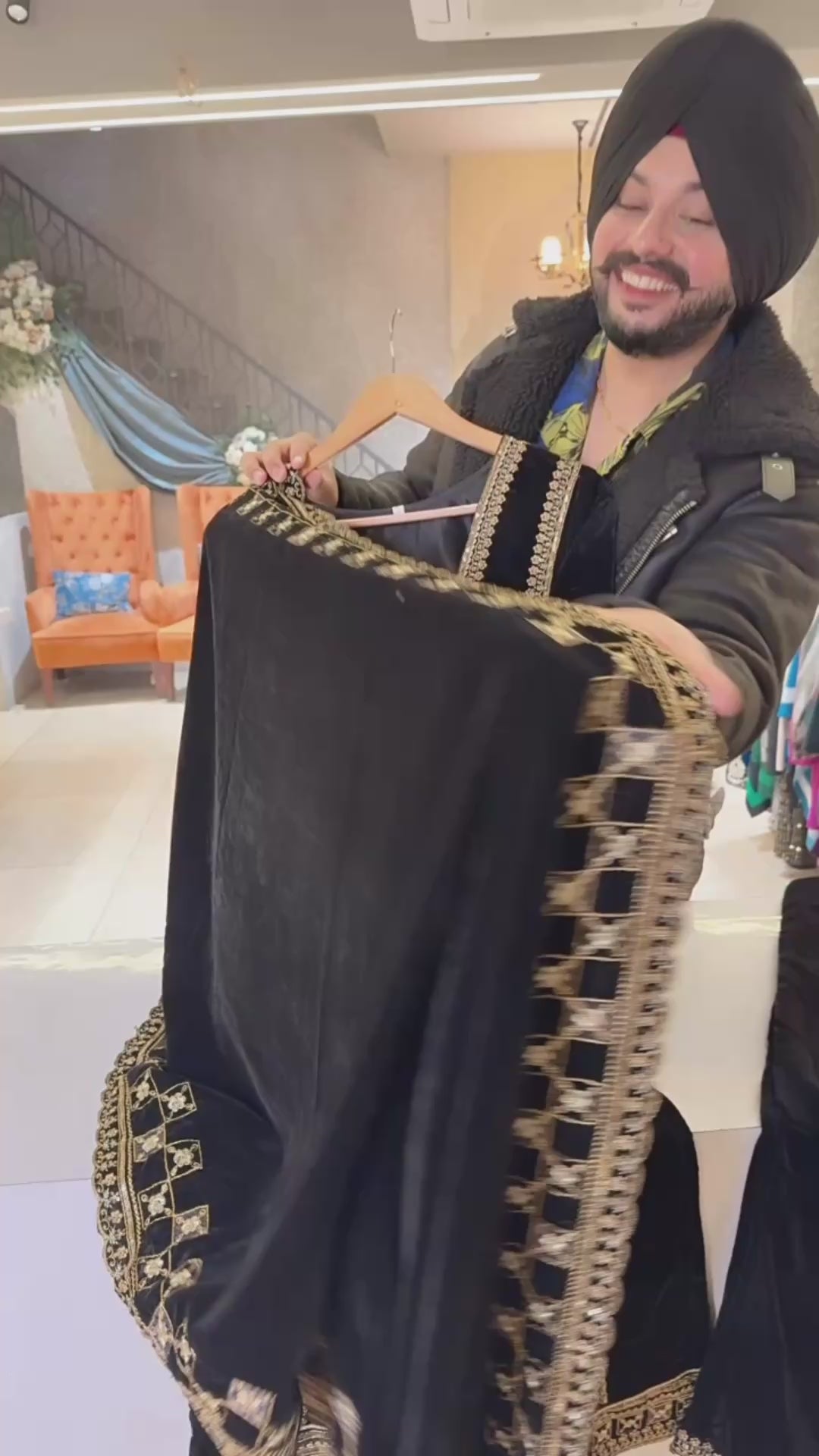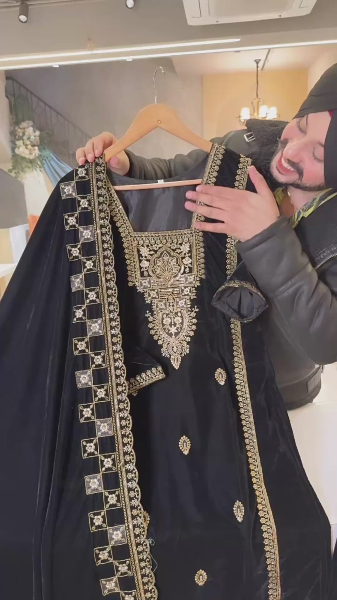 Black square neck Velvet embroidered Suit