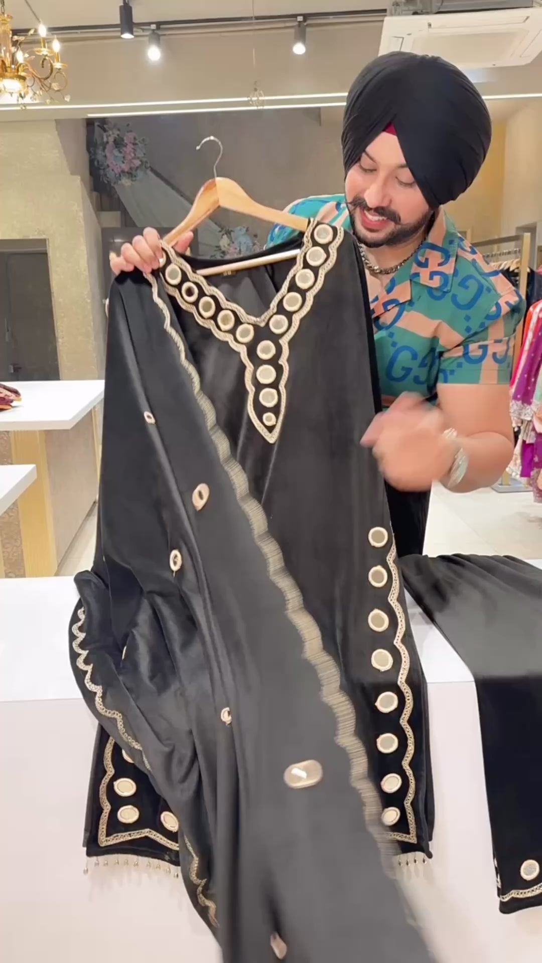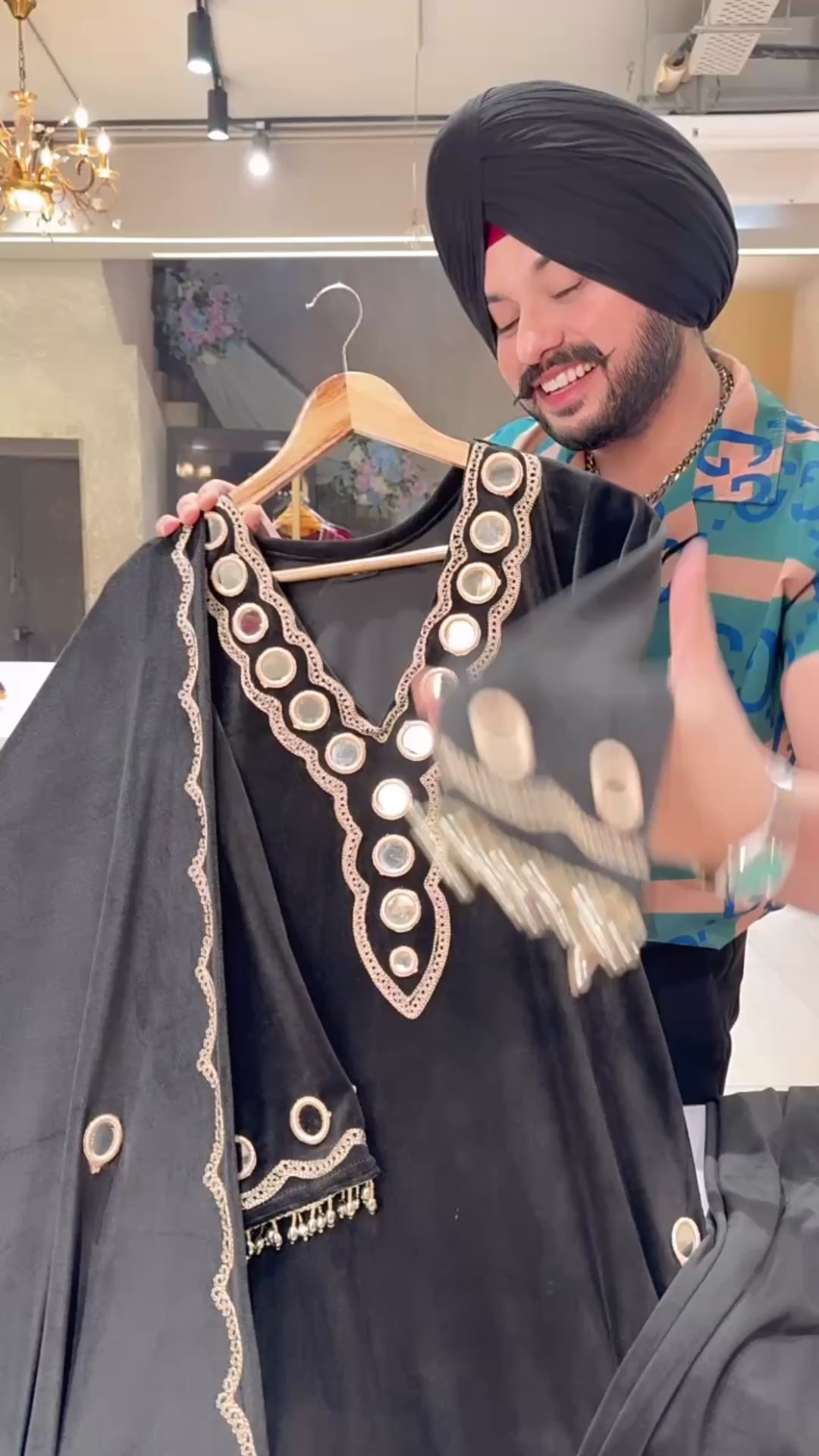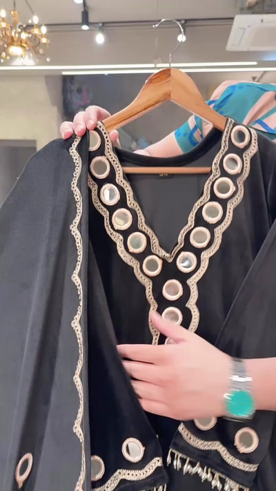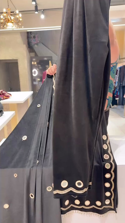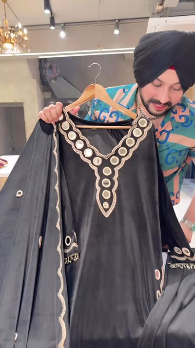 Black Velvet Fully Stretchable Mirror Work Straight Suit with Beautiful Duppata
