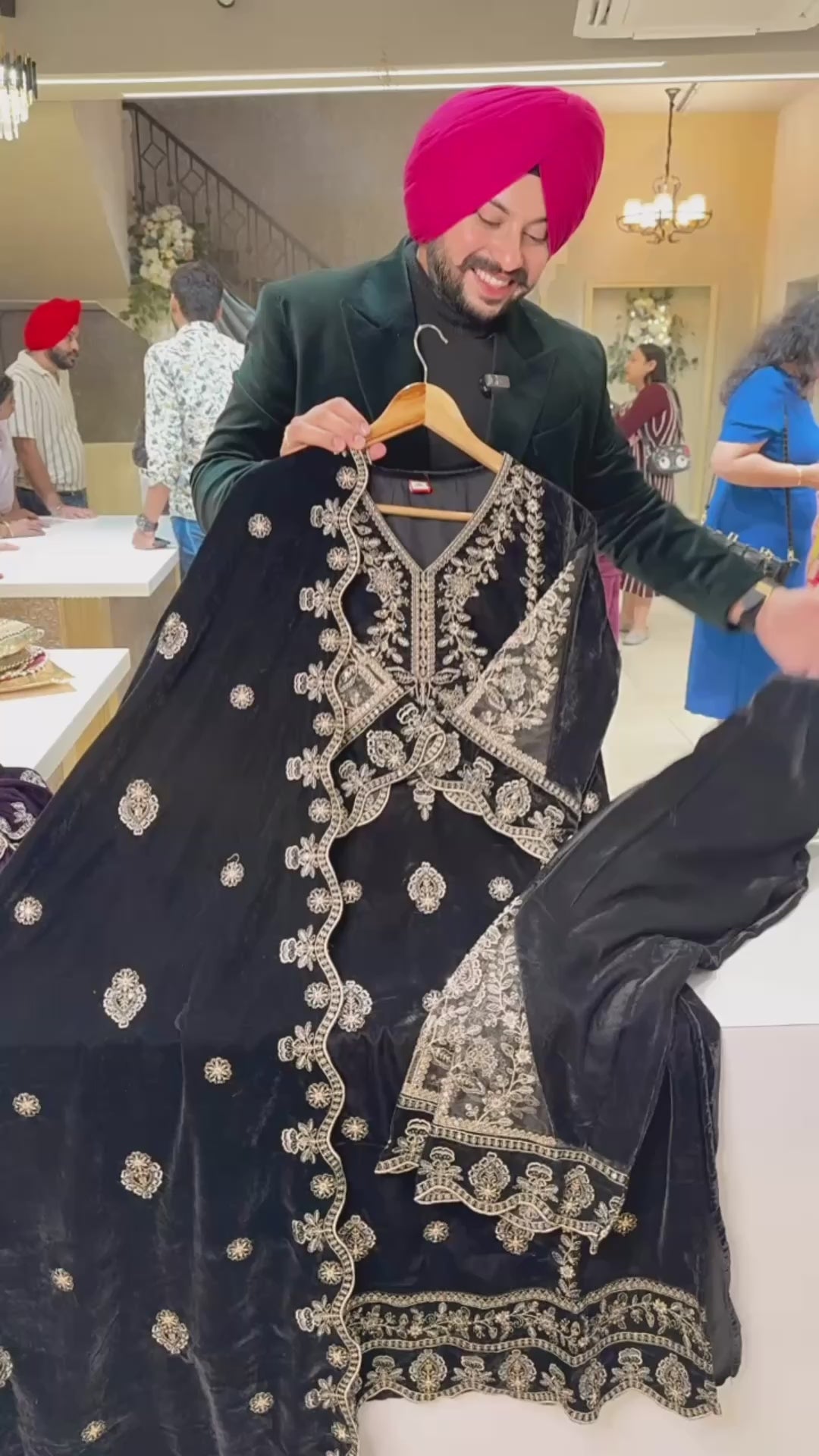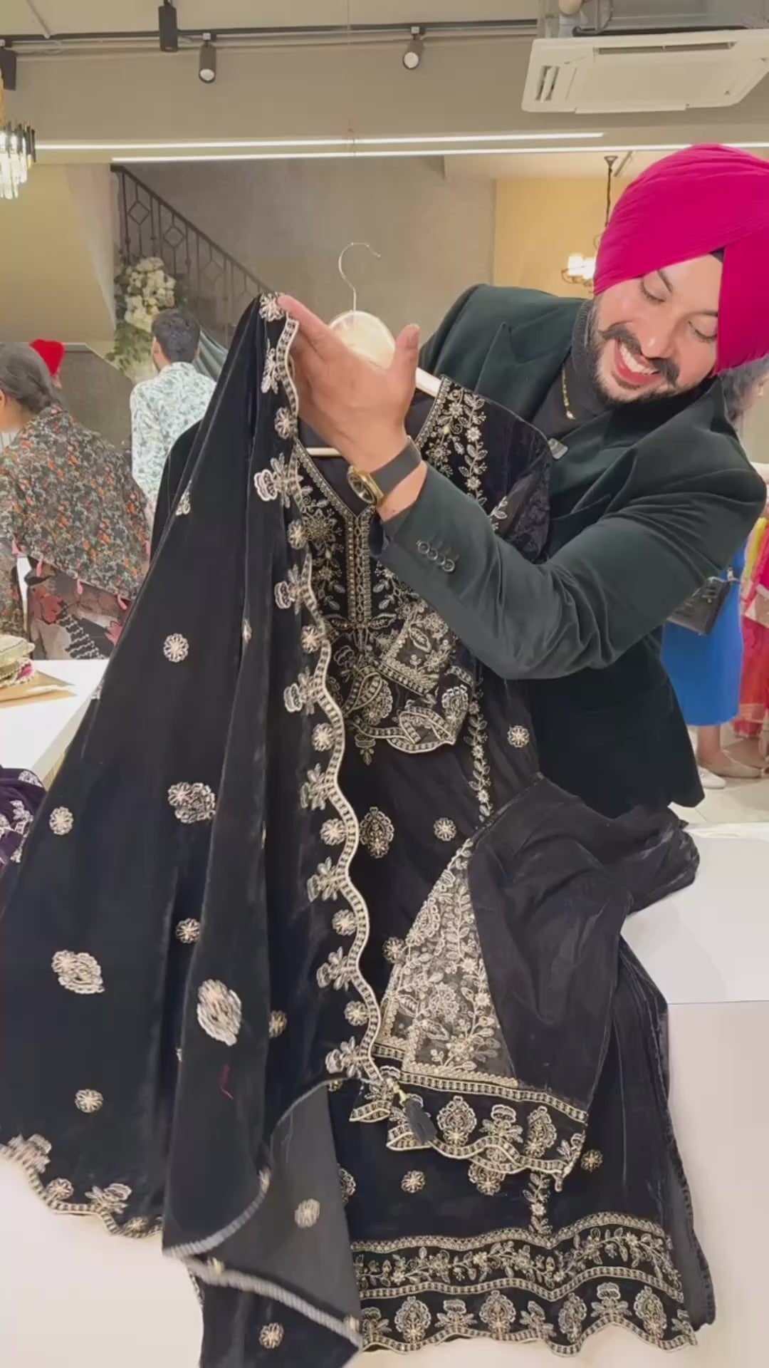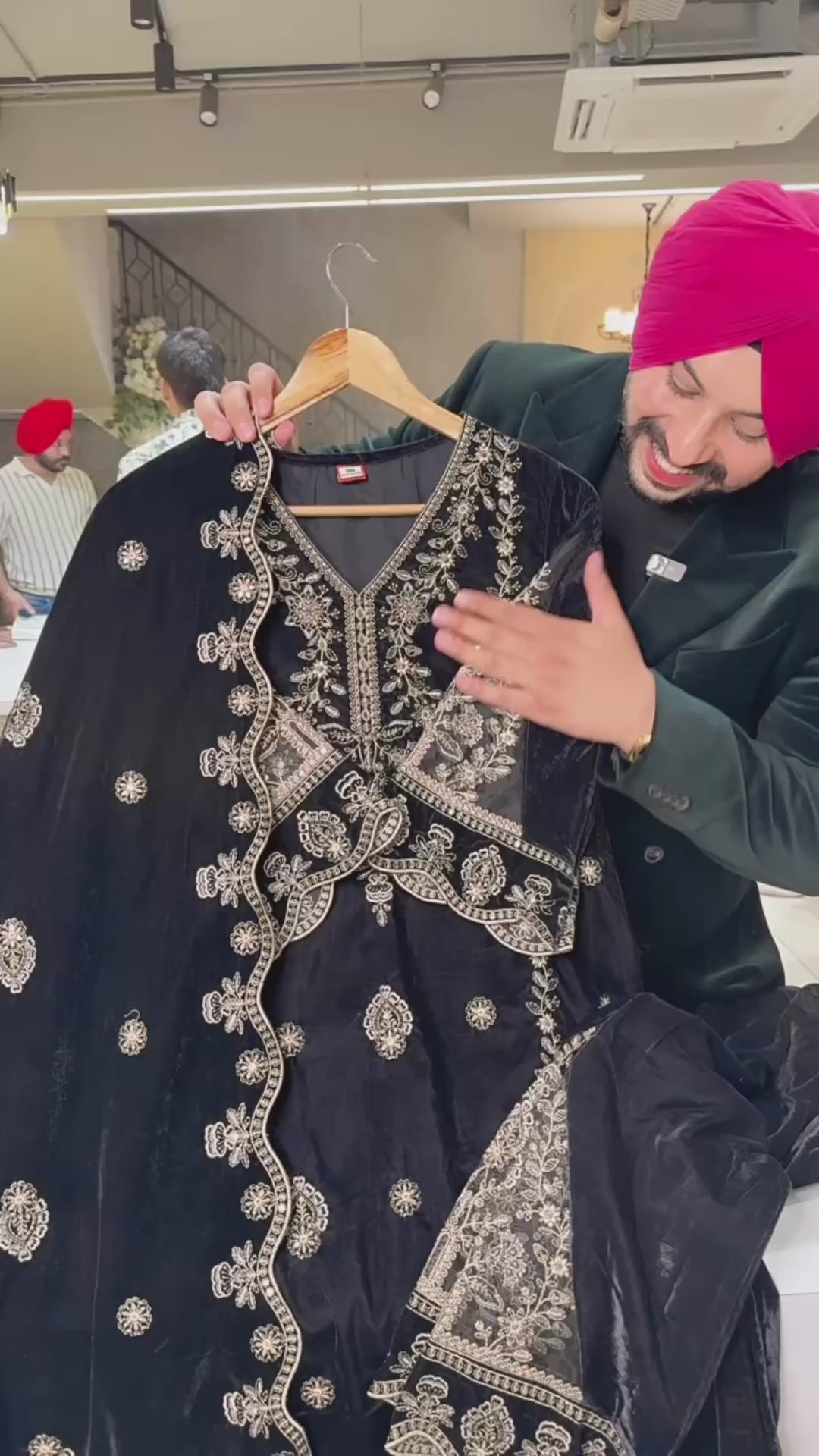 Black premium Velvet Heavy embroidered Pakistani Suits with Designer Sleeves & pants