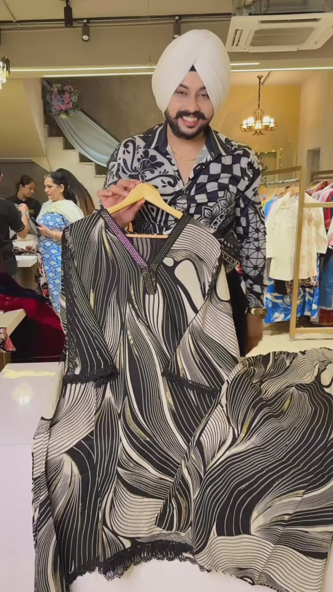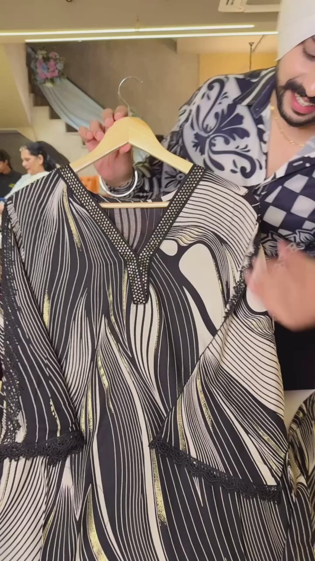 Black & white Rayon Airport Look C-cut Plazo Coord set with Sequins Work on neck