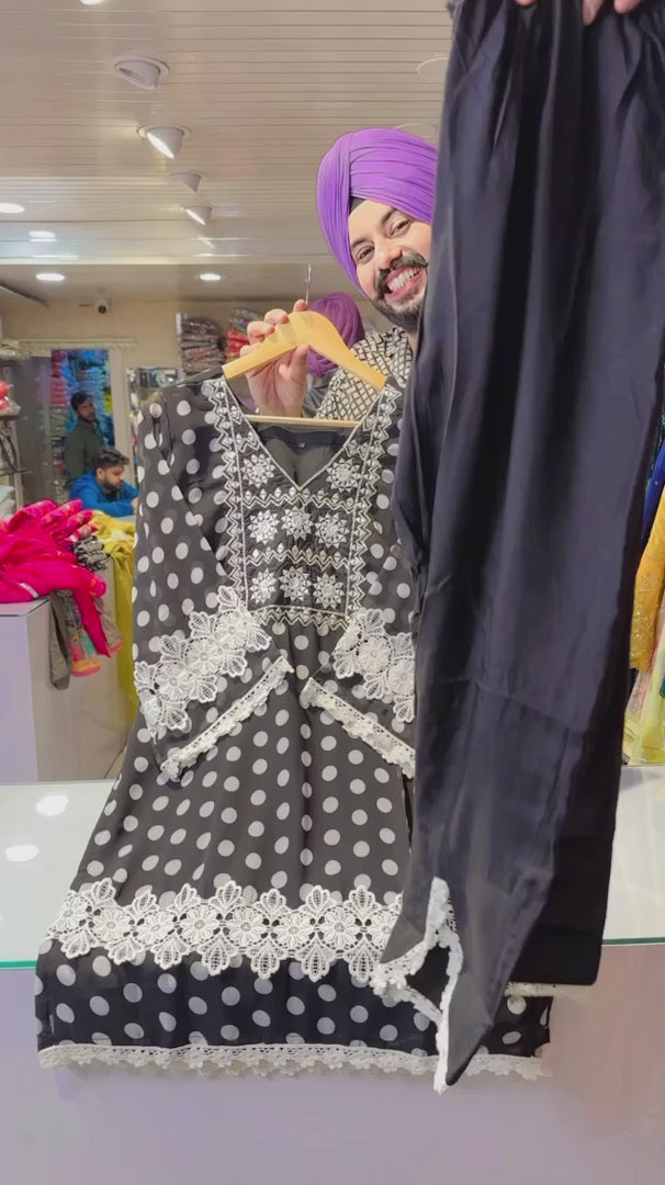 Black & white Georgette polka Dot Coord set with Mirror Handwork on neck