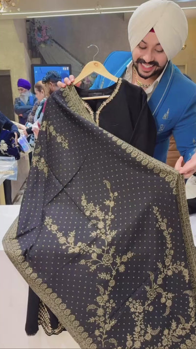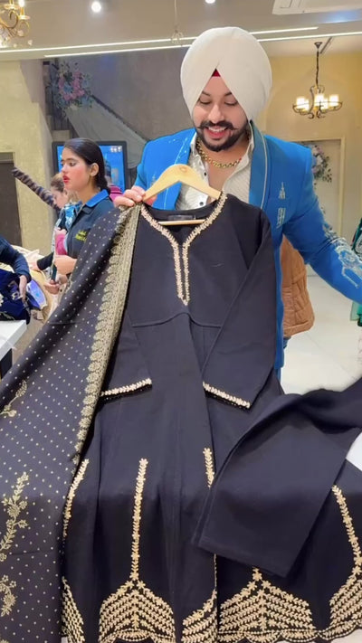 Black Woolen Embroidered Anarkali Suit with Beautiful Woolen Banarasi Look Duppata