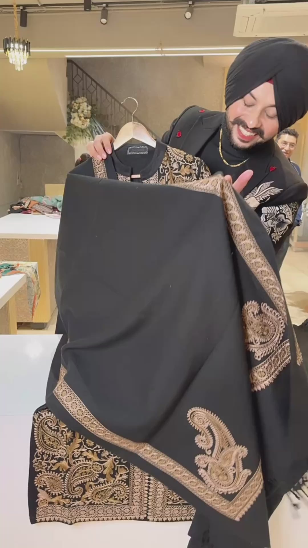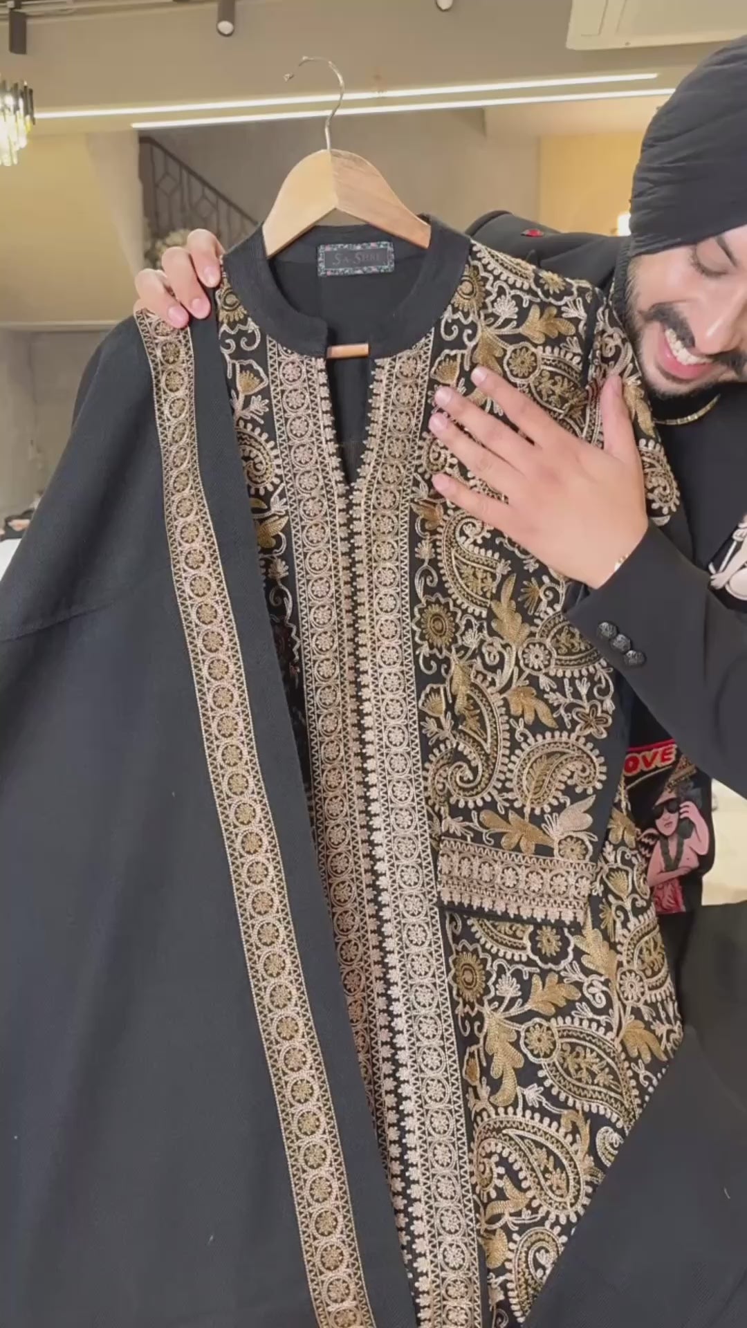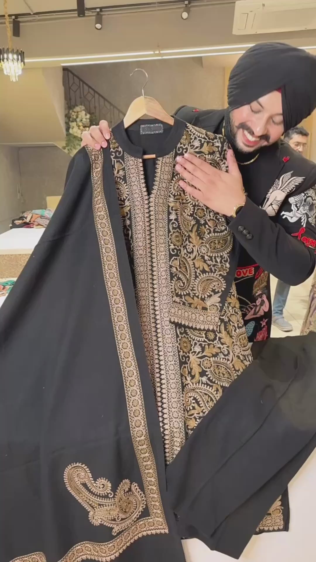 Black Woolen Kashmiri Embroidered Straight Suit with Heavy Shawl