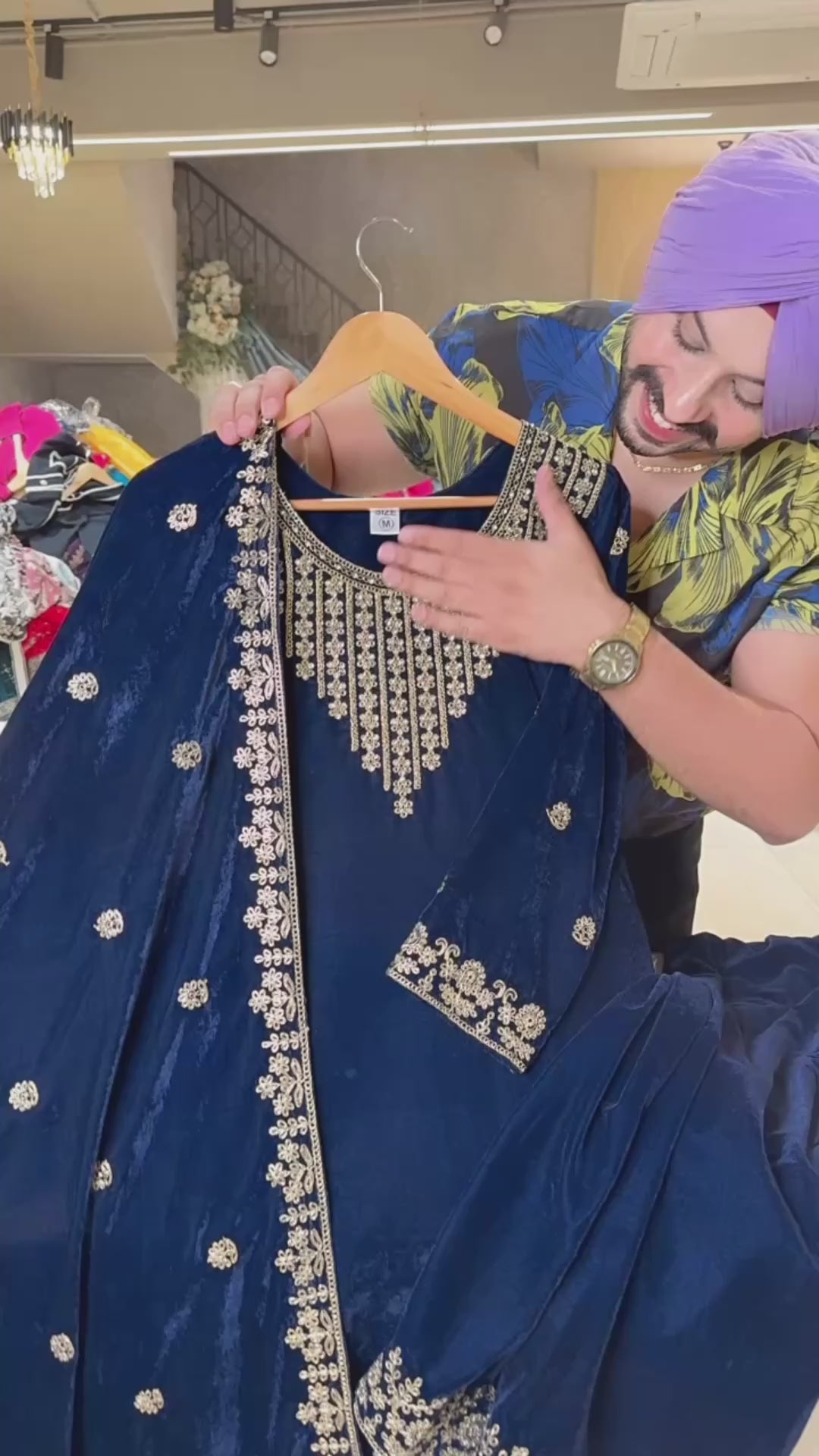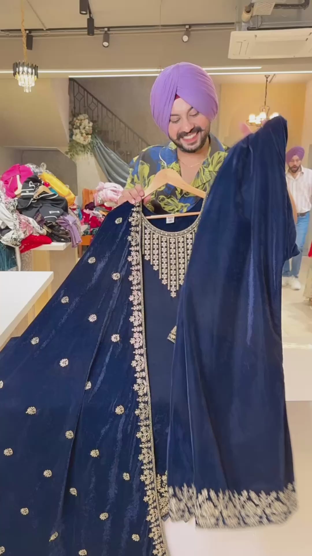 Navy Blue heavy hand embroidered Pakistani Plazo suit with Beautiful Duppata