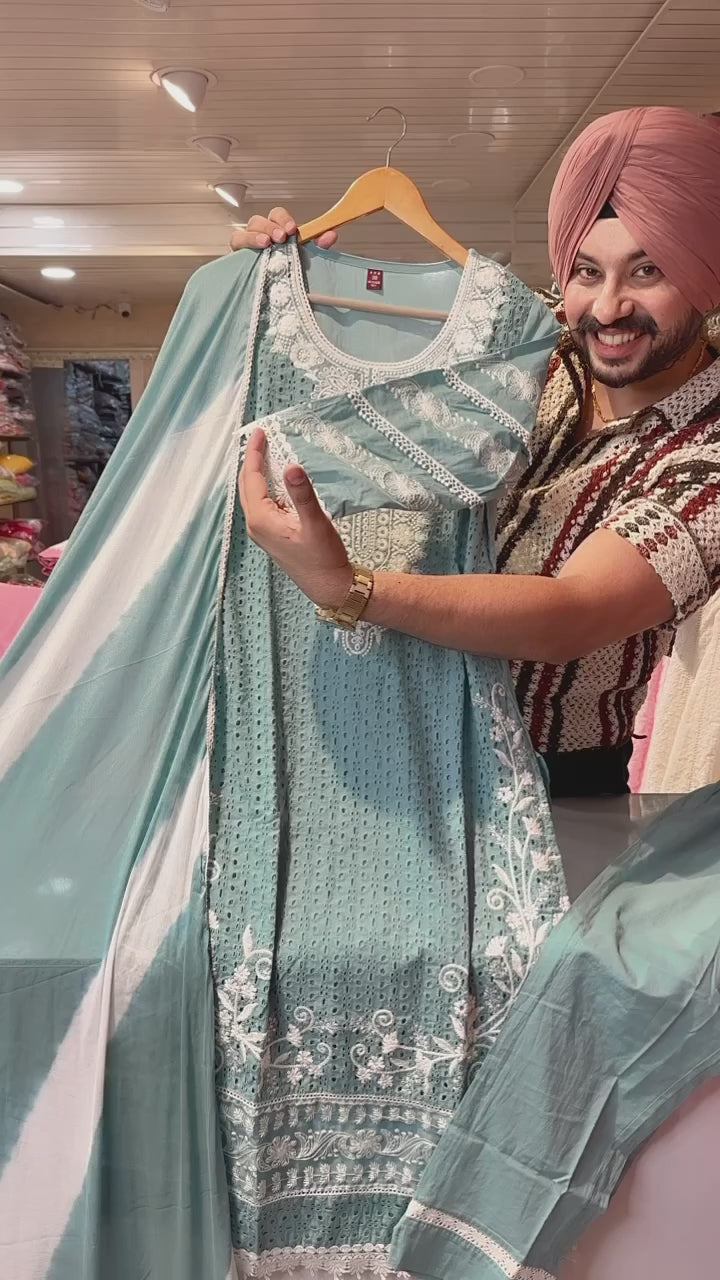 Sea blue Pure cotton Heavy Embroidered Pakistani Suit with Tie & Dye Duppata