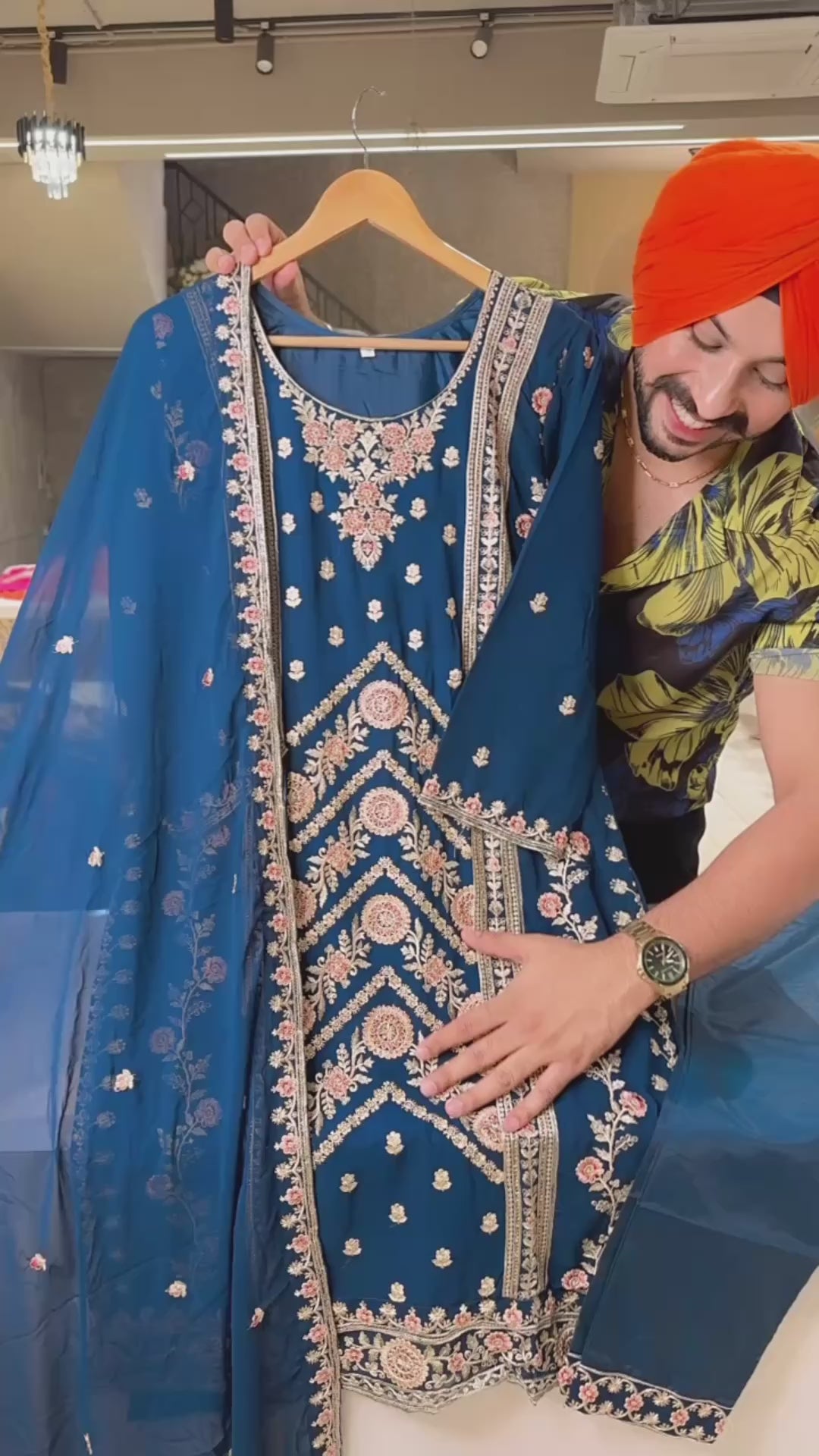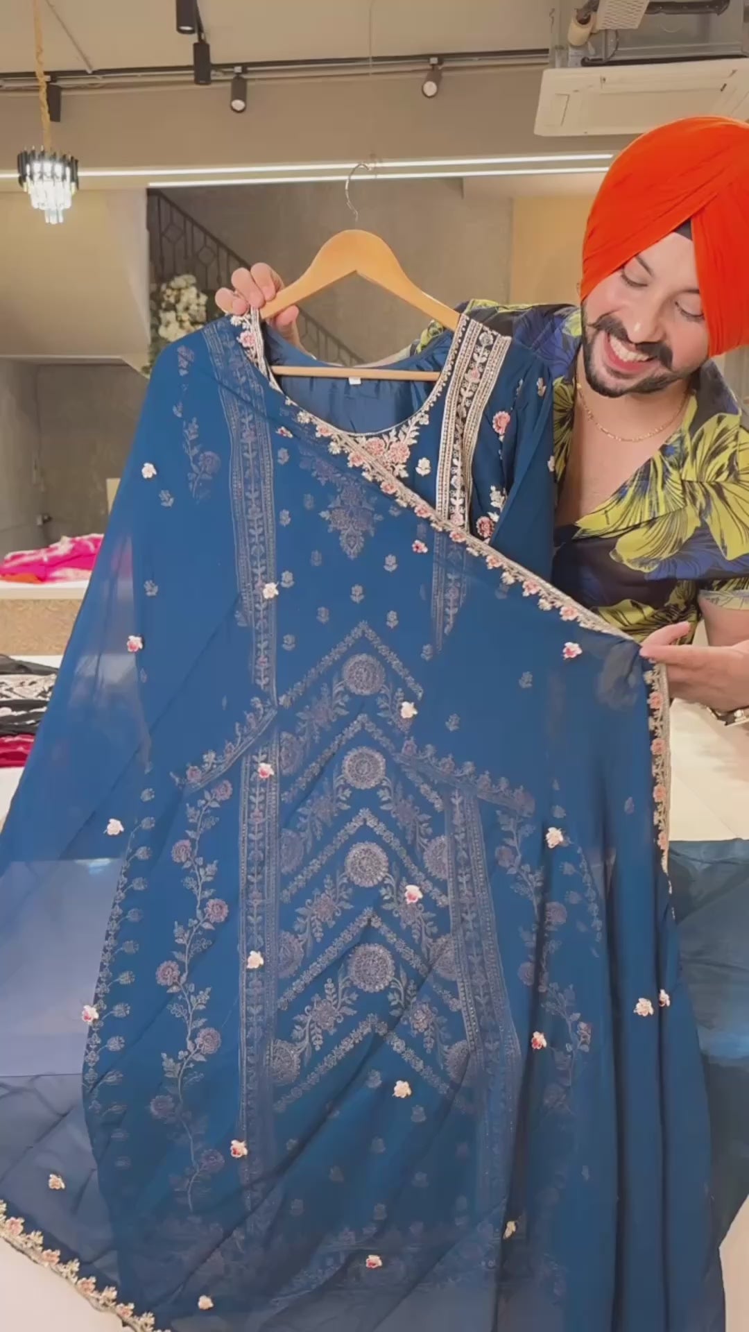 Dark blue Georgette Fully embroidered Straight Suit with Embroidered Duppata