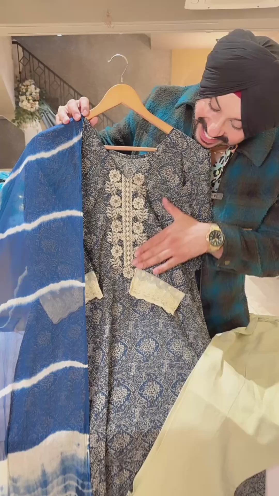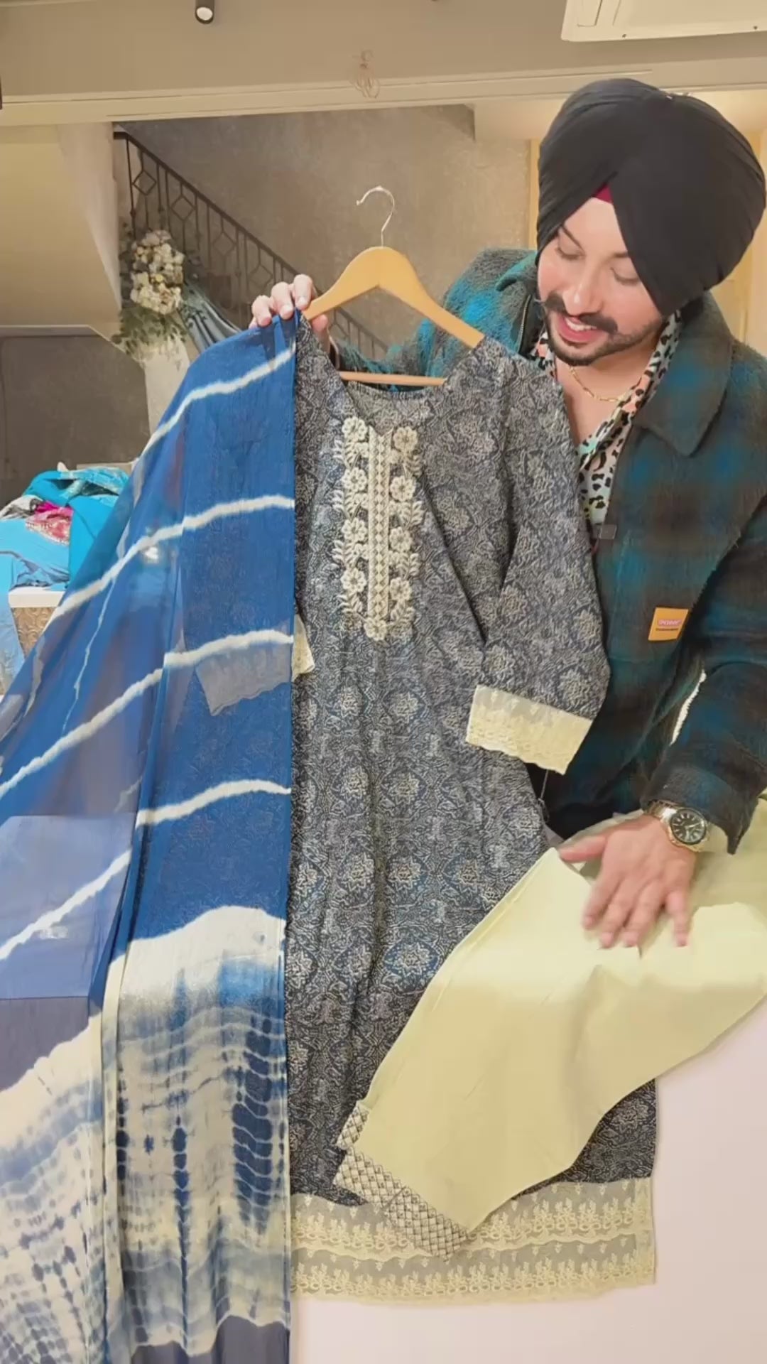 Blue Pure Cotton Embroidered Office Wear suit with Beautiful Chiffon Tye & Dye Duppata