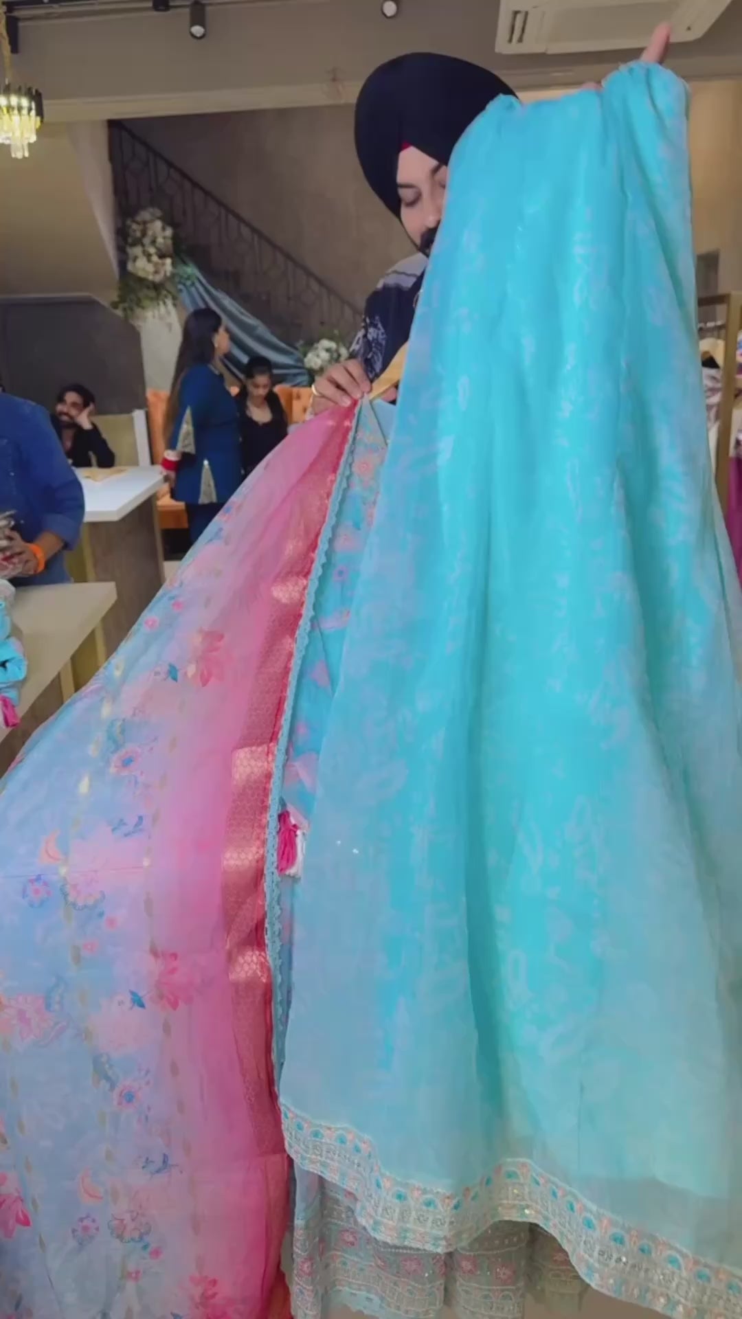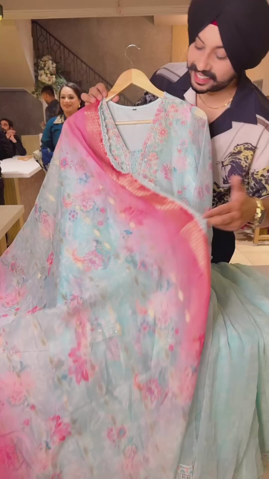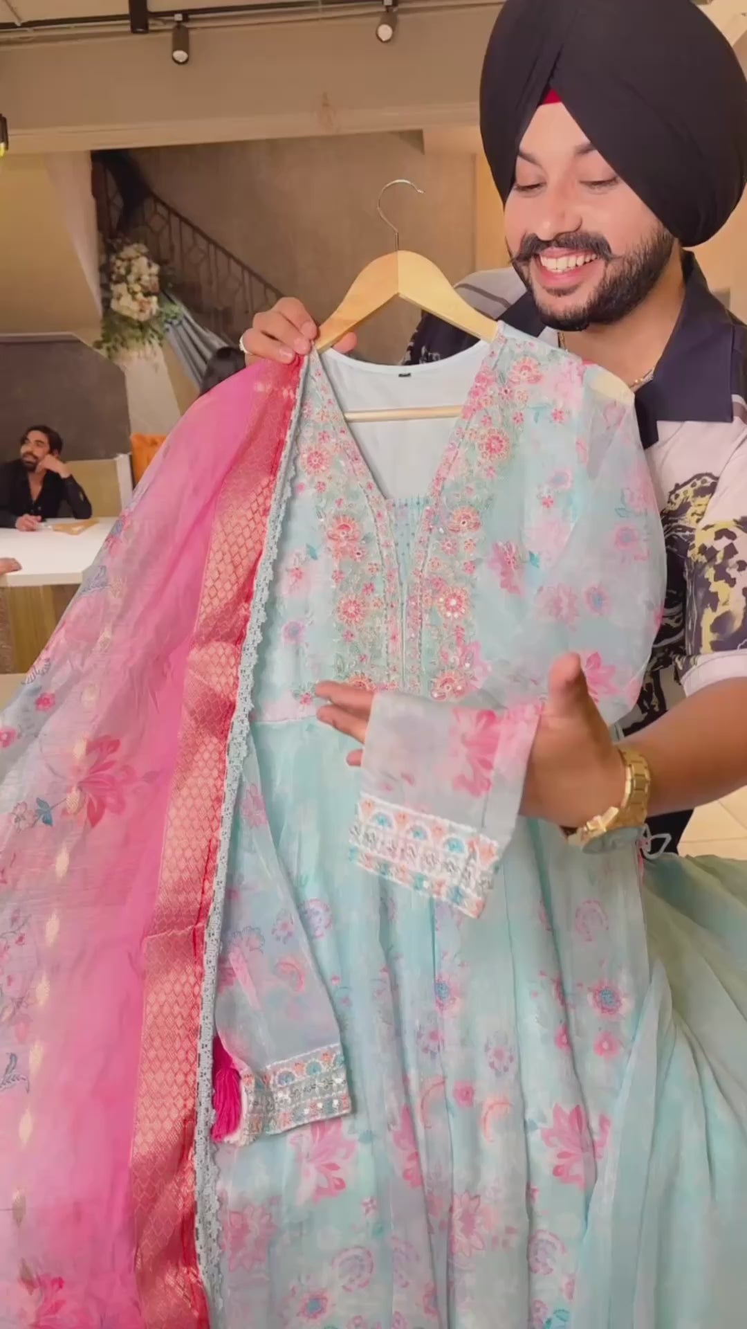 Light Blue Shimmer Organza Sharara Anarkli suit with Beautiful Embroidery work on neck