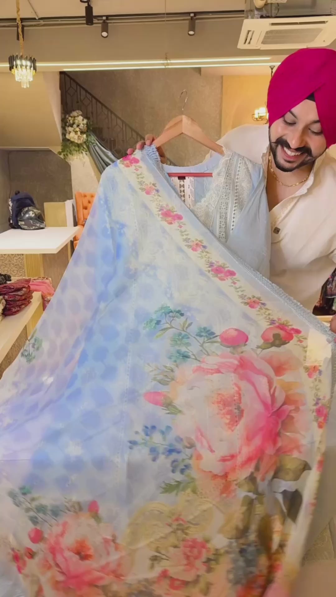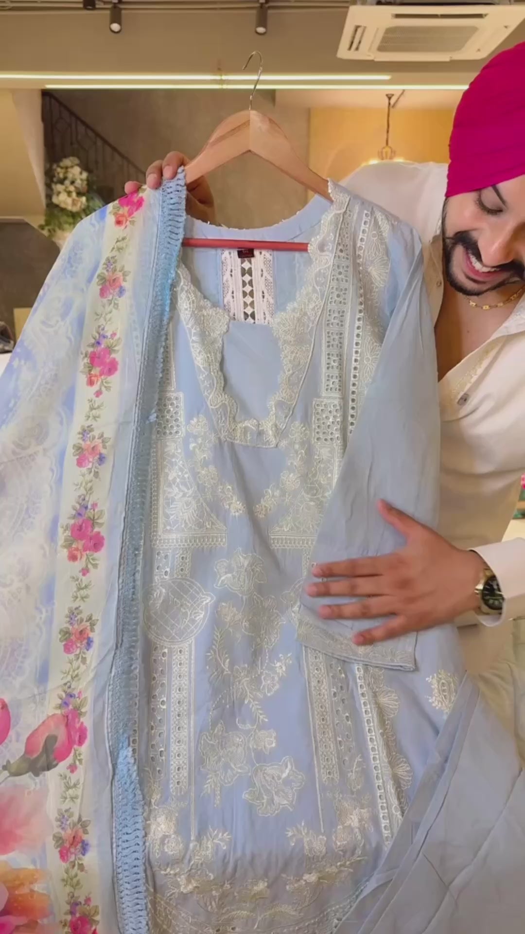 Sky Blue pure Cotton A-line Heavy Embroidered Pakistani Suit with Beautiful Digital Print Chiffon Duppata