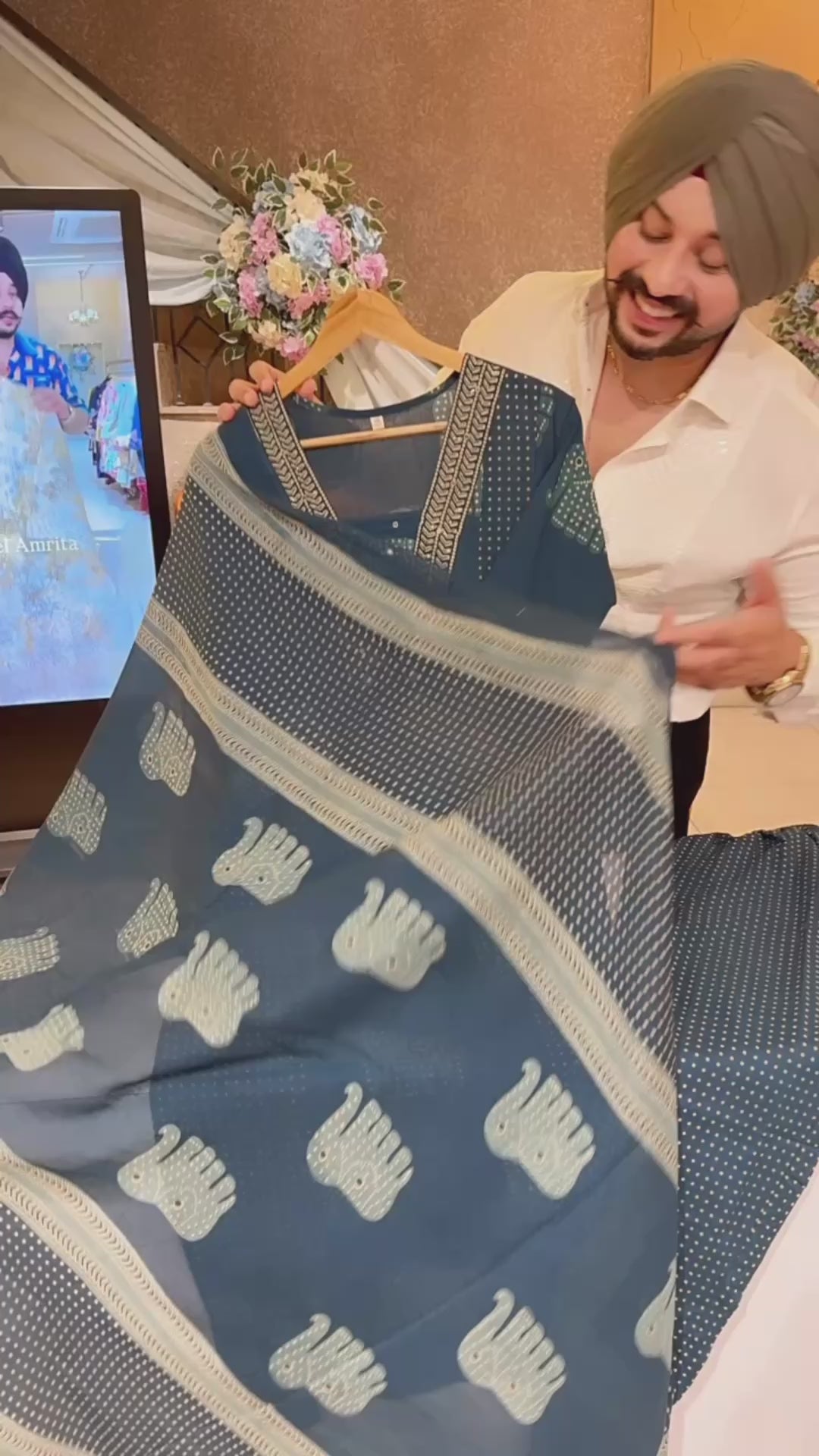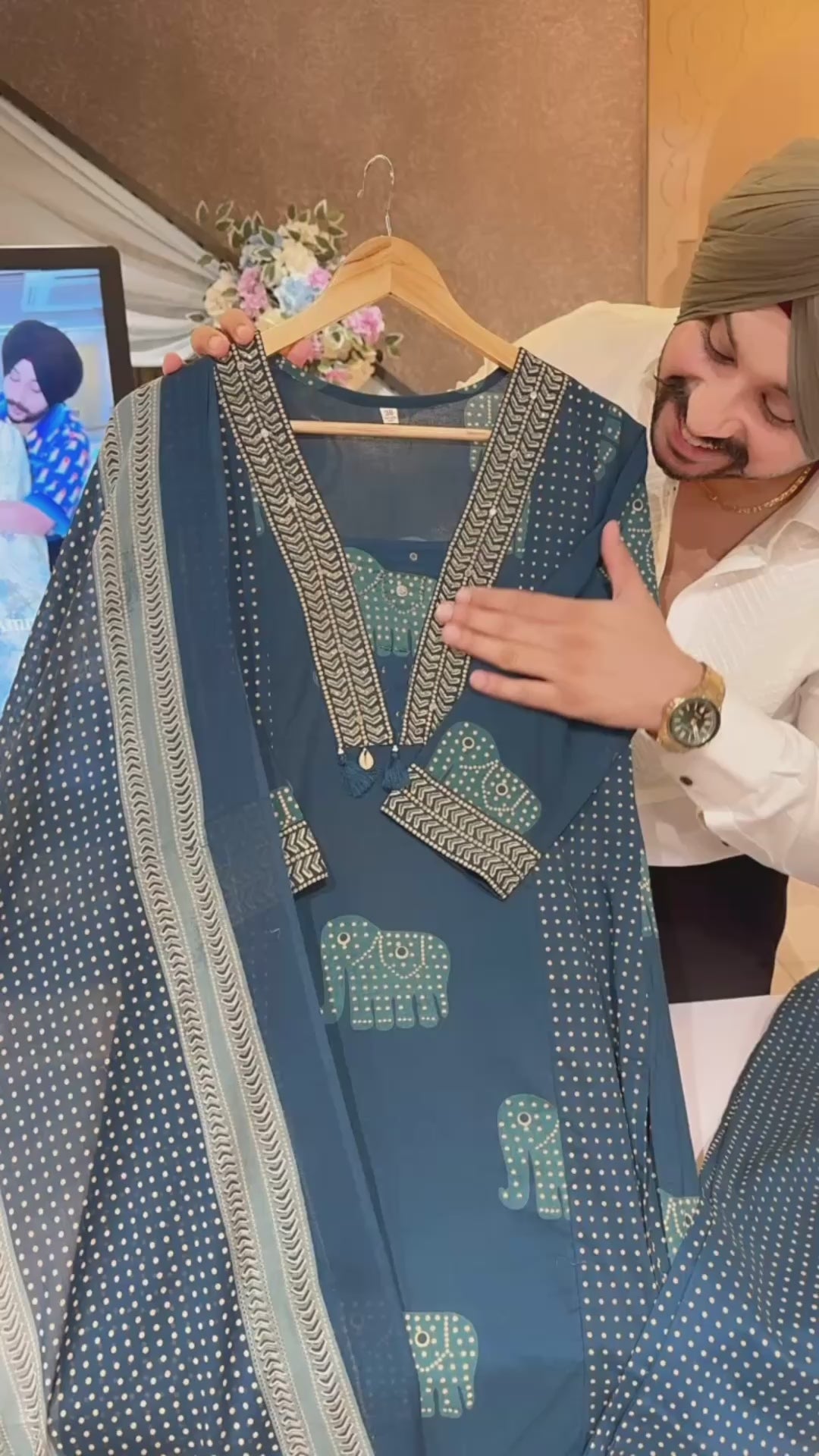 Teel Blue Pure cotton Elephant Print Straight Suit with Beautiful Duppata
