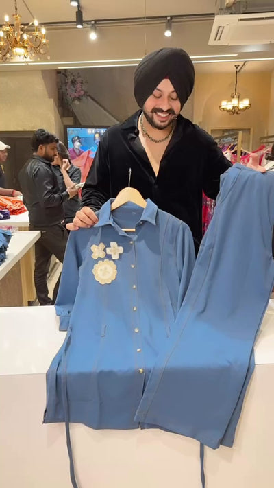 Powder Blue Stretchable Imported Stuff Pre-Winter Coord set
