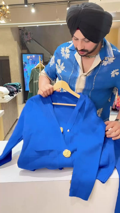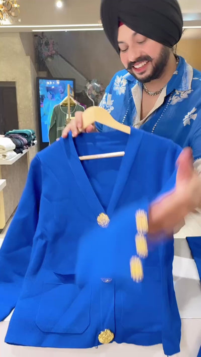 Royal Blue Imported Woolen Party Wear Ccord set